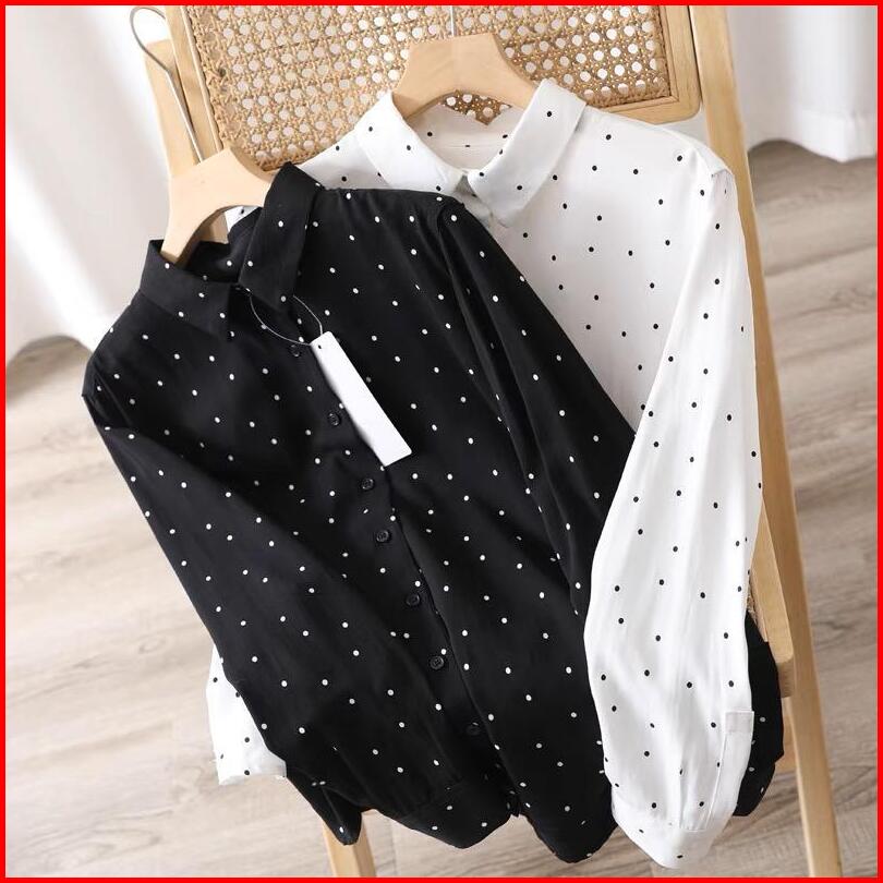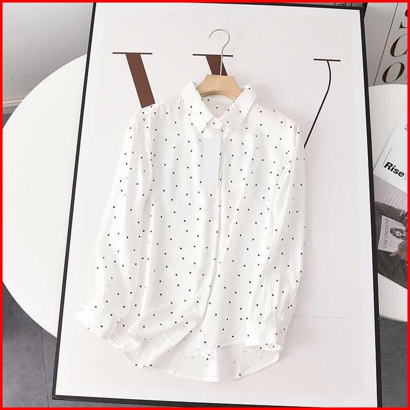 Kemeja Wanita Lengan Panjang Kemeja Polka Kemeja Kantor