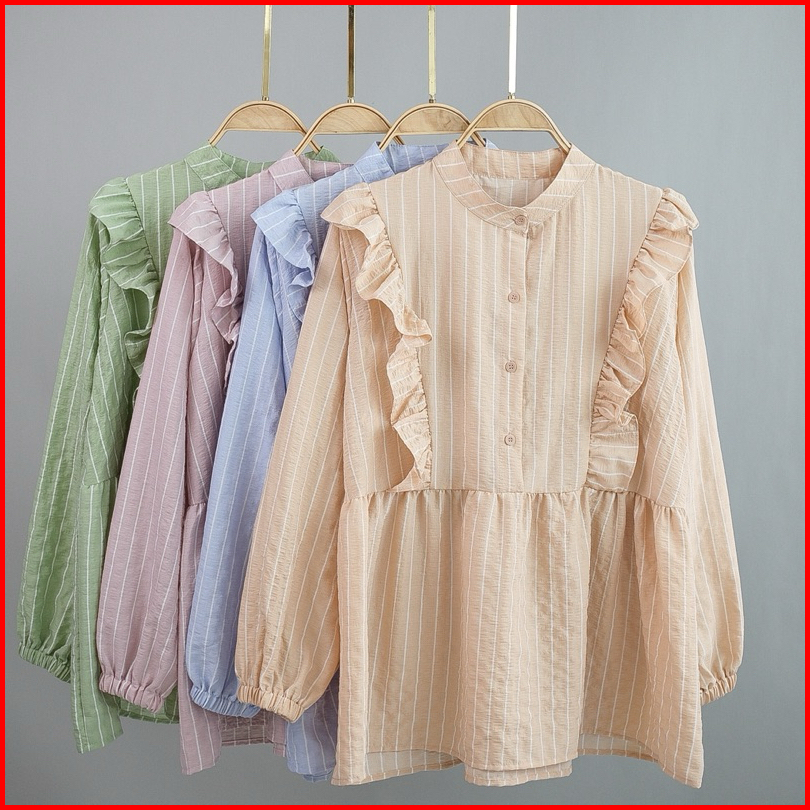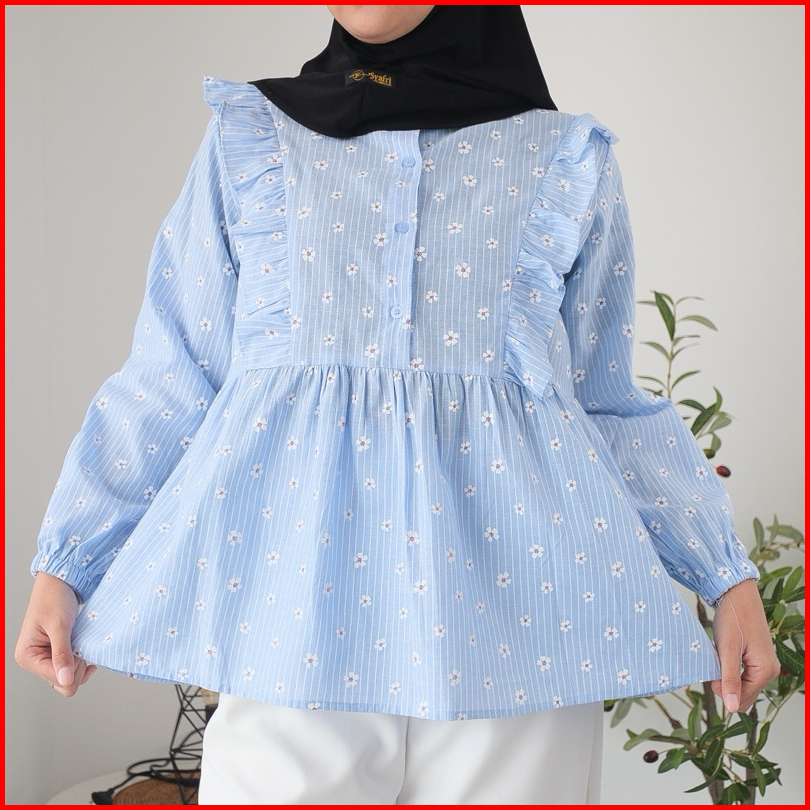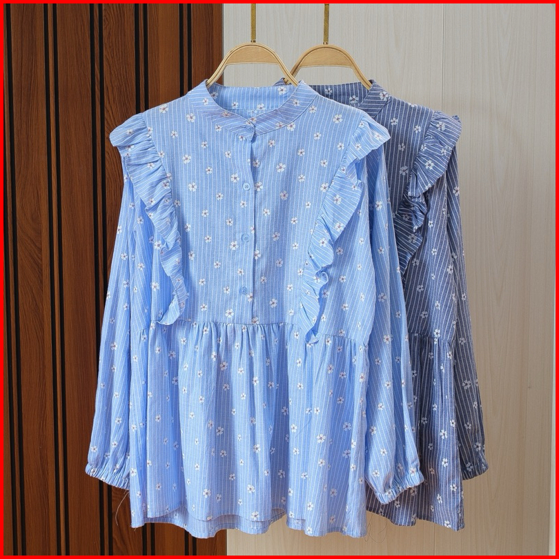 Blouse Kemeja Bunga Wanita Blouse Wanita Lengan Panjang Blouse Ruffle P32.