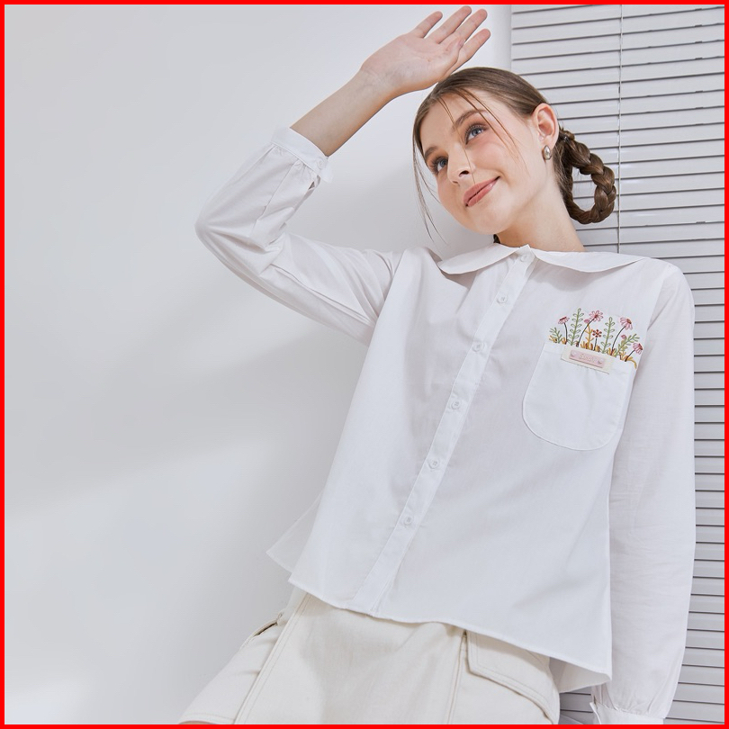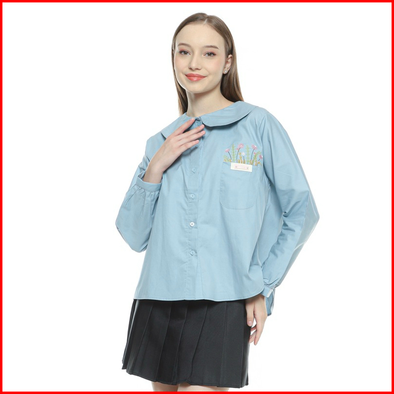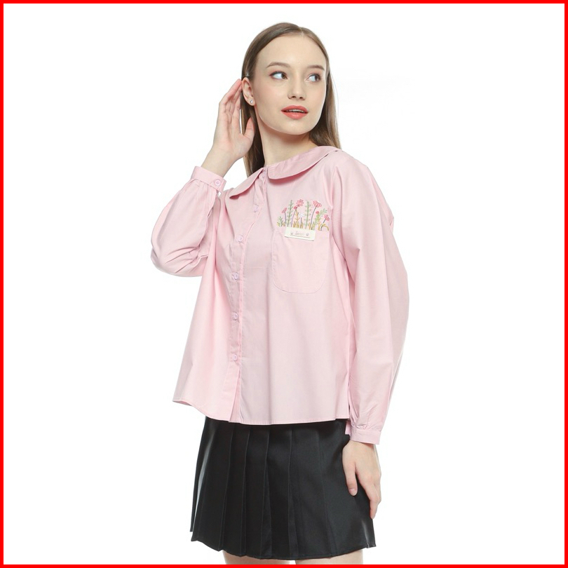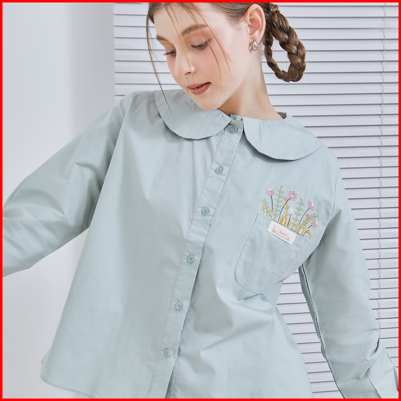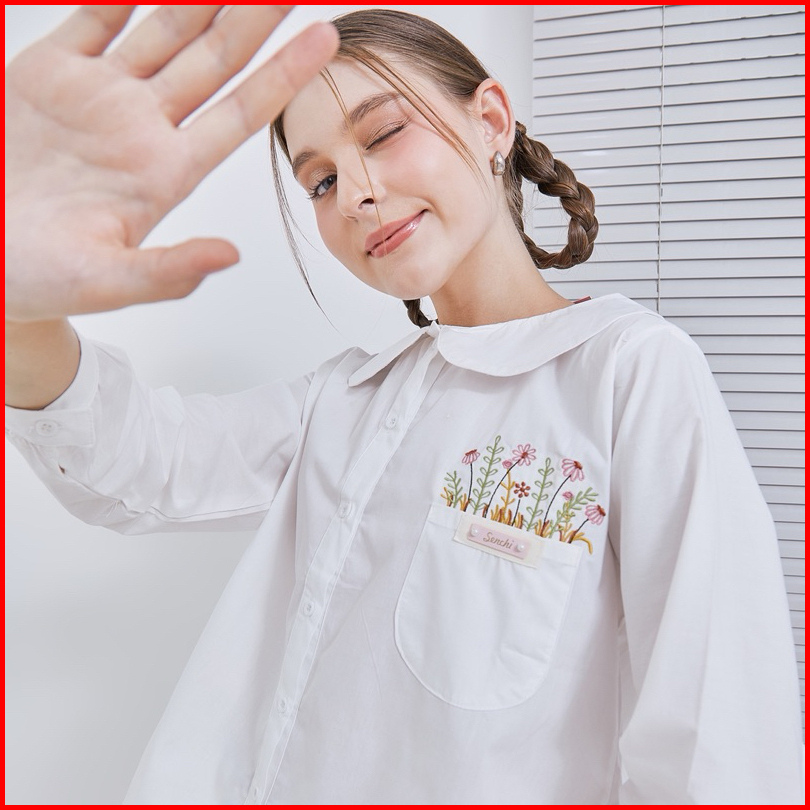 Senchi - Koharu Flower Embroidered Shirt Atasan Kemeja Bordir Bunga Lucu Atasan Kemeja Style Jepang Korea Kemeja Bunga B