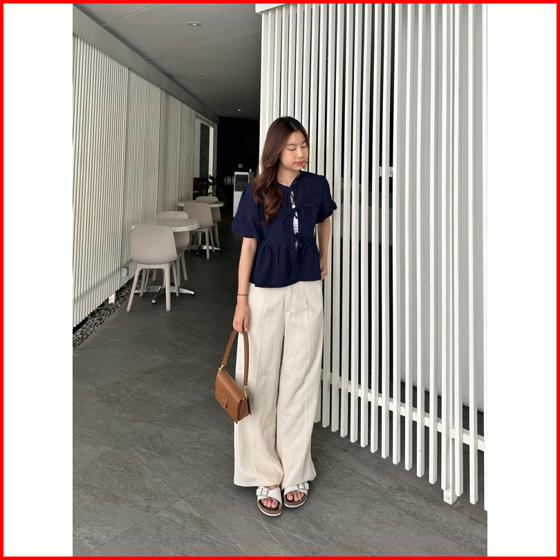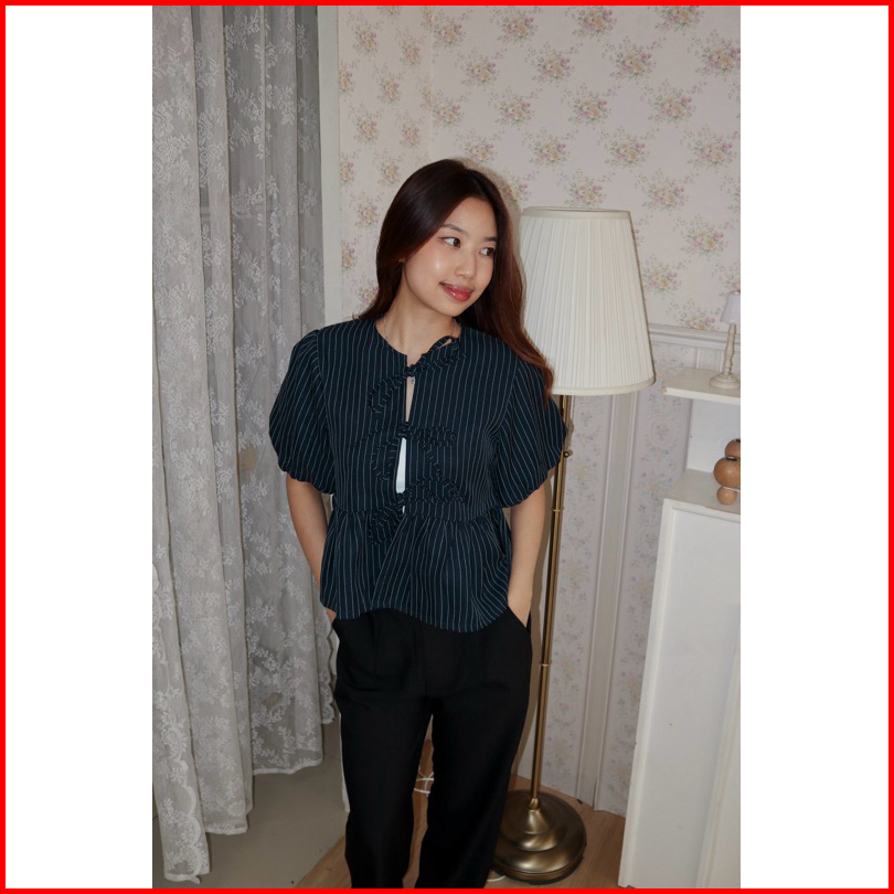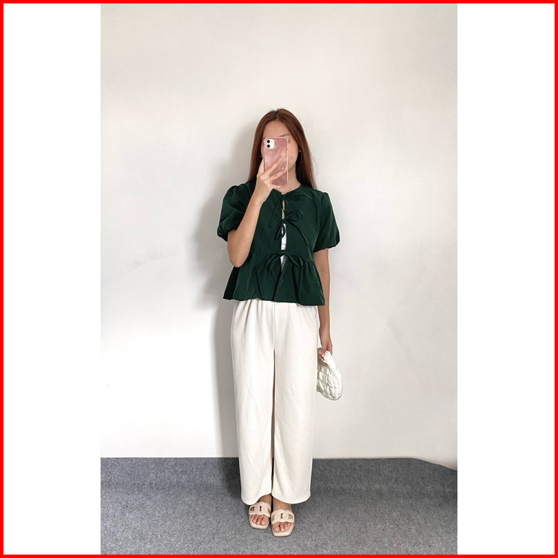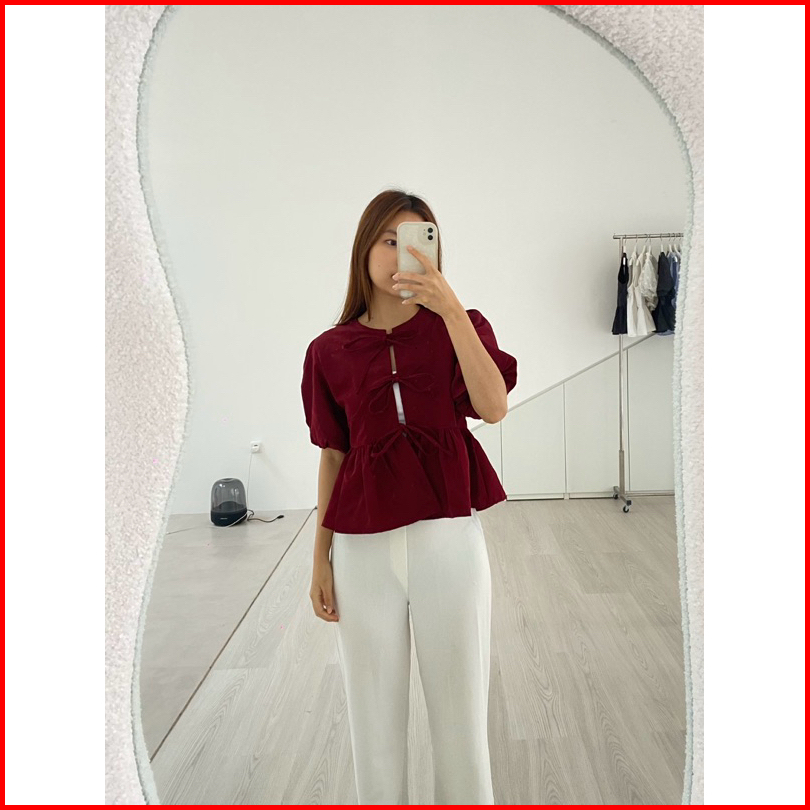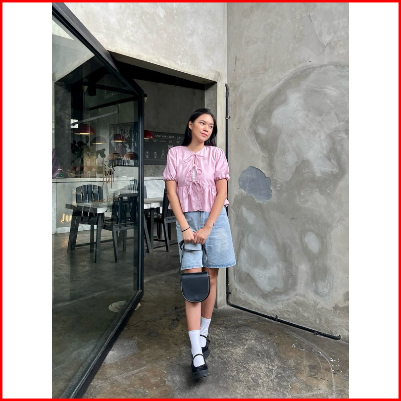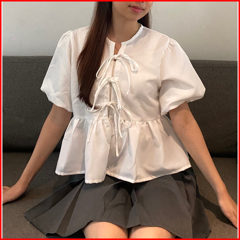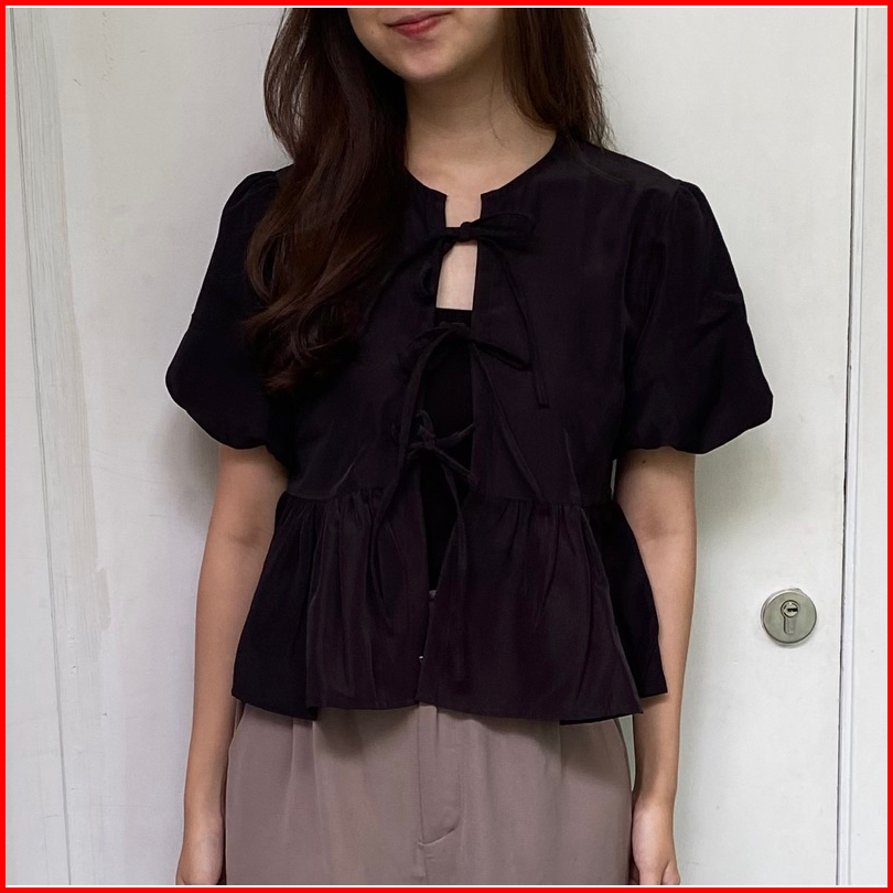 Maggie Top Blouse Korea Atasan Perempuan Ribbon Top Blouse Wanita Top Berlengan
