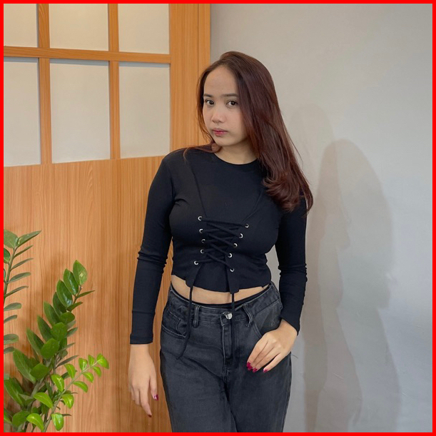 Mianabali Clara Top Lengan Panjang Atasan Wanita Tali Croptop Viral Croptop Korea
