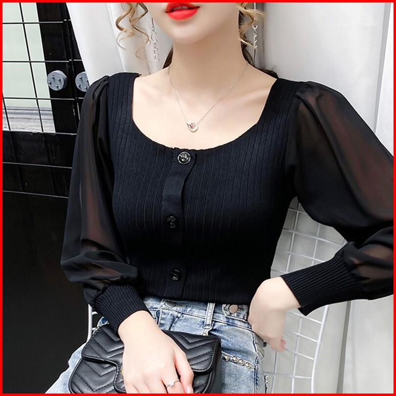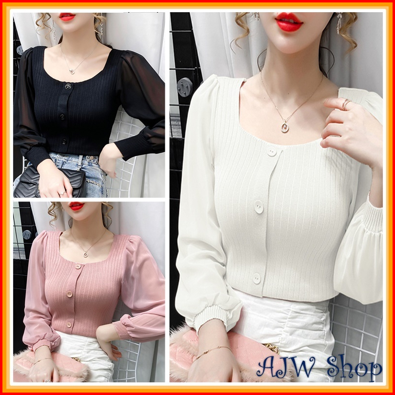 Ajw Atasan Blouse Rajut Wanita Kekinian Xbh Puffy Blouse Lengan Panjang Wanita Korean Style Blouse Atasan Rajut Premium