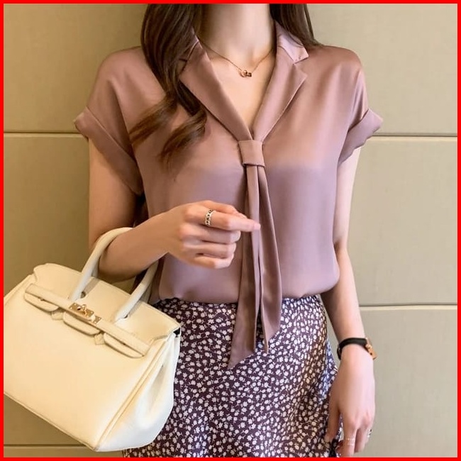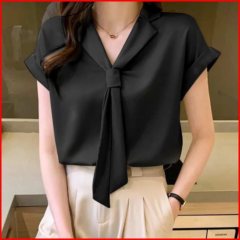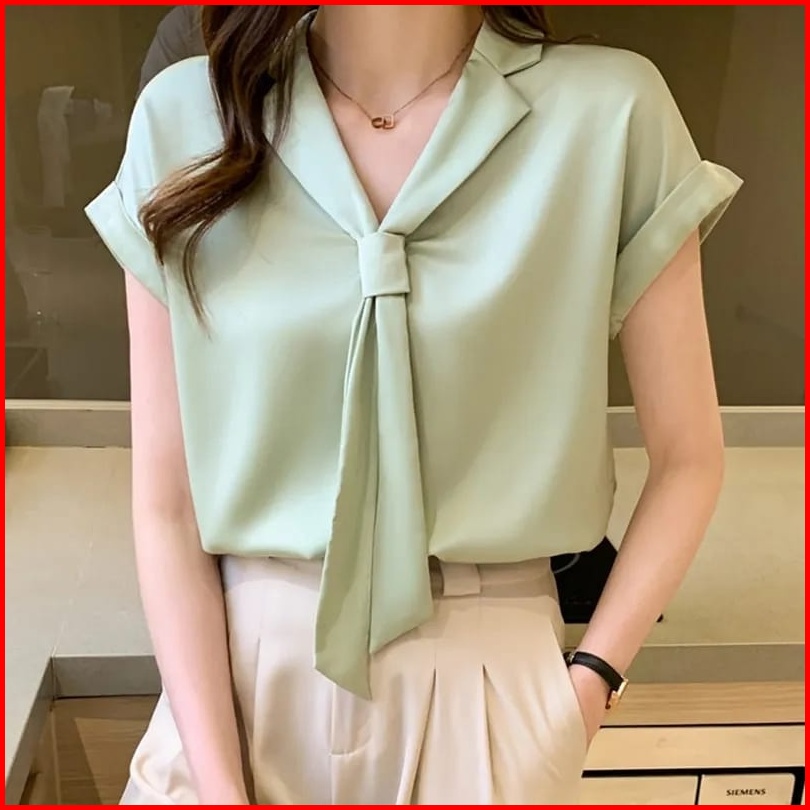 Kemeja Polos Wanita Lengan Pendek Katun Shakila Blouse Atasan Wanita Style Korea Model Hyesun Big Size Ukuran S M L Xl X