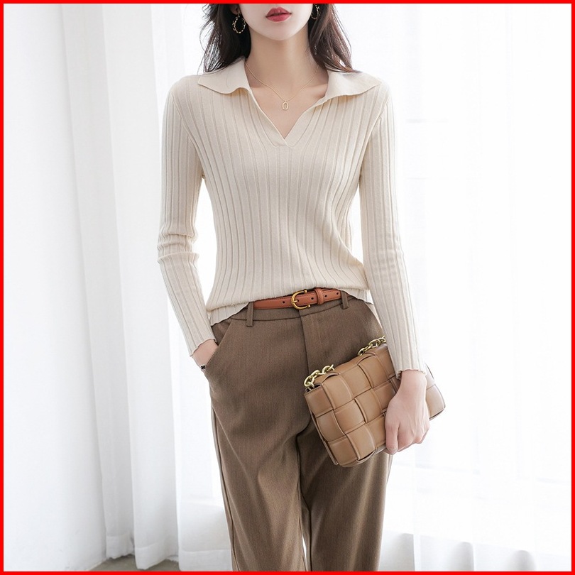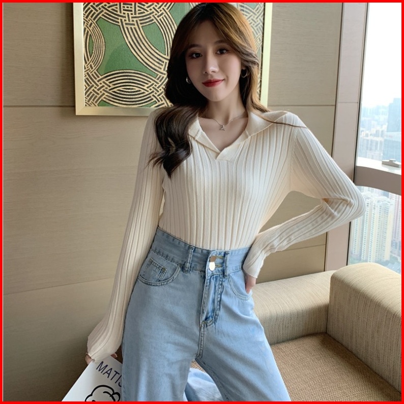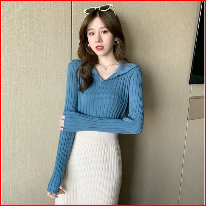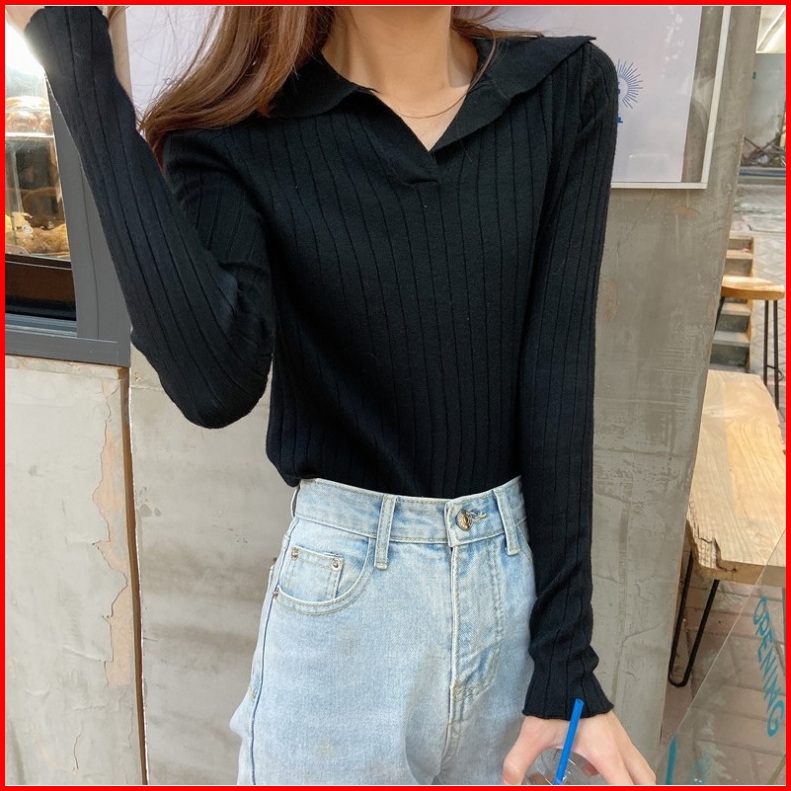 Ajw Atasan Wanita Berkerah Rajut Import Tu Kaos Rajut Lengan Panjang Kerah Baju Rajut Wanita Lengan Panjang Berkerah