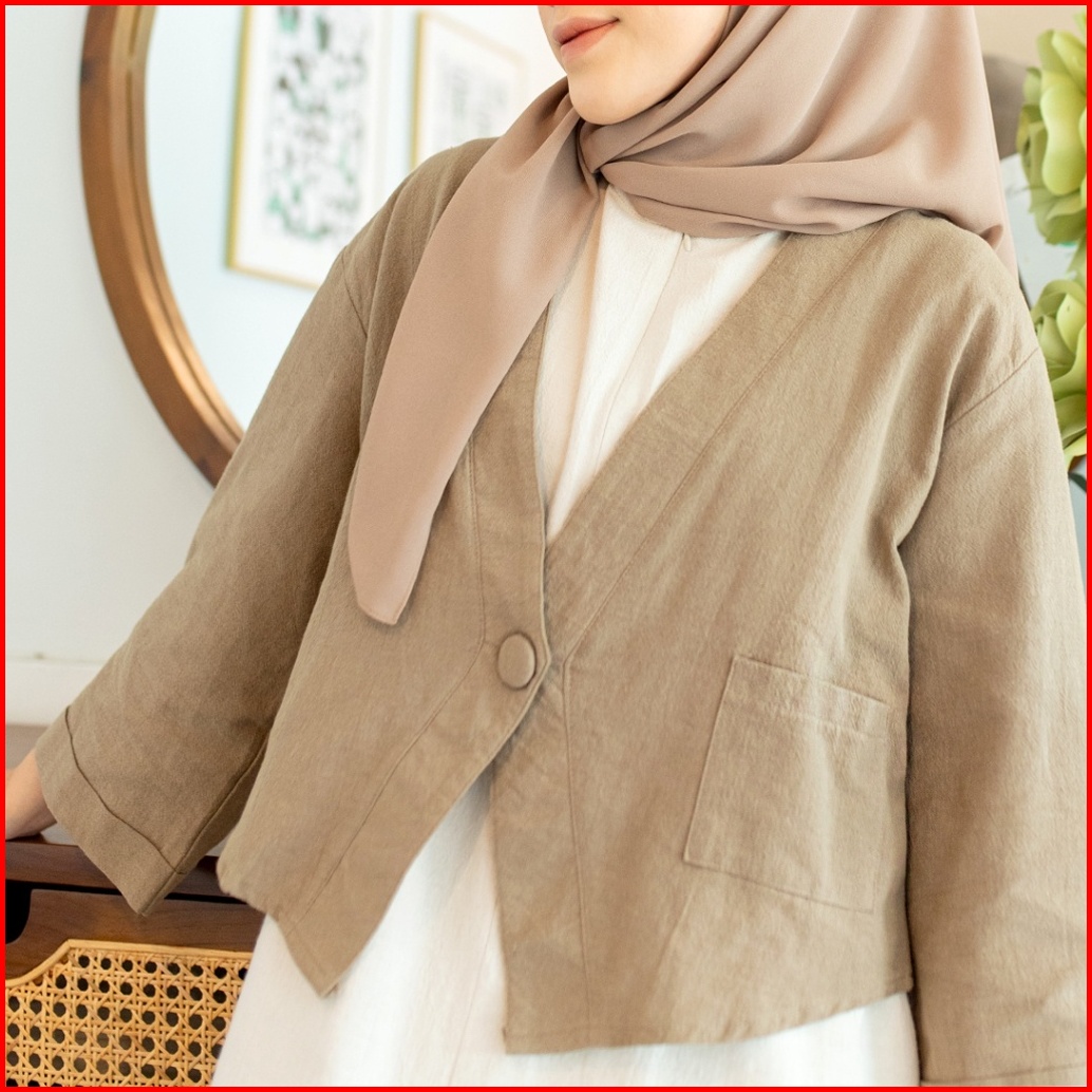 Haruka Crop Outer I Luaran Outer Blazer Linen Wanita Atasan Wanita Terbaru