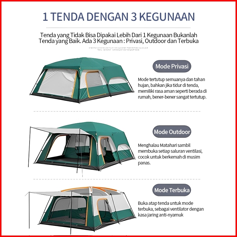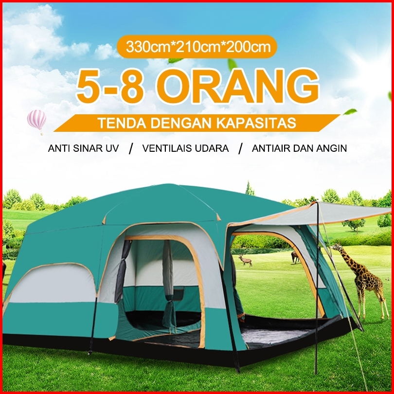 Tenda Camping Waterproof Otomatis 5-8 Orang Large Capacity Spacious Field Tent 3.32.12.0m