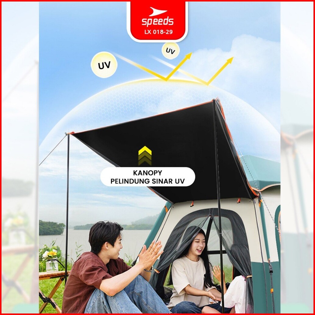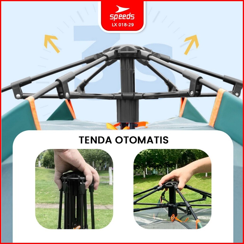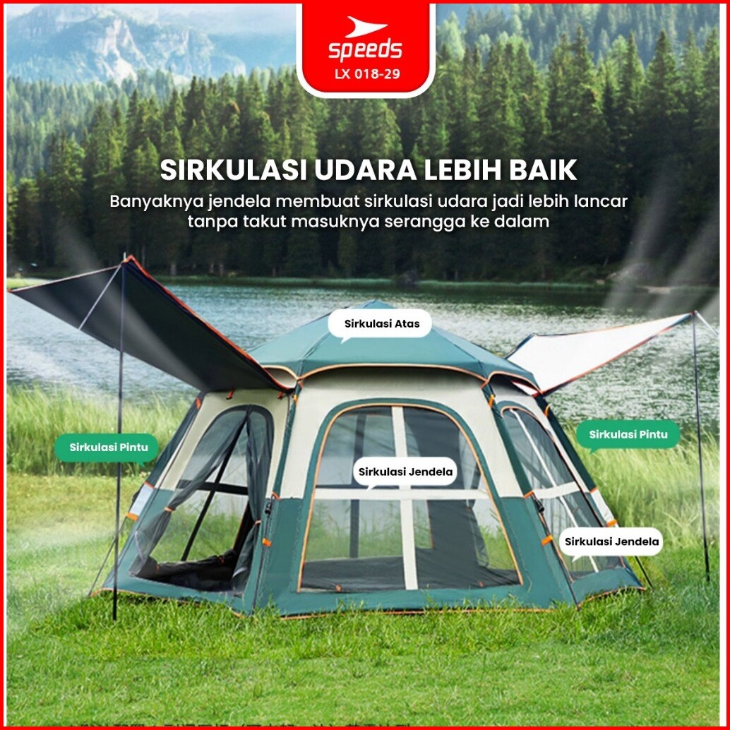 Speeds Tenda Camping Besar Otomatis Portabel Muat 6-9 Orang 2 Pintu Kemah Piknik Outdoor Kanopi 018-29