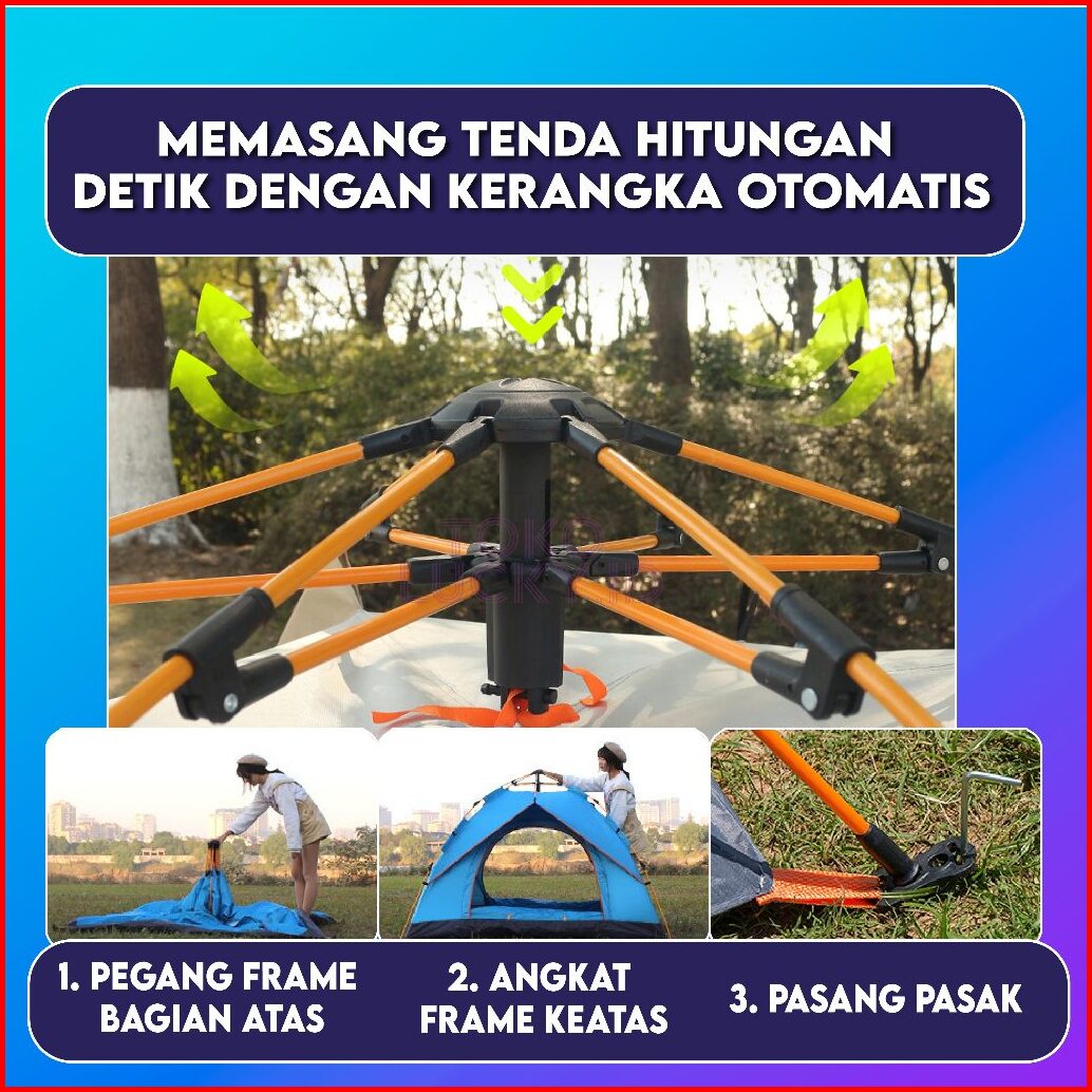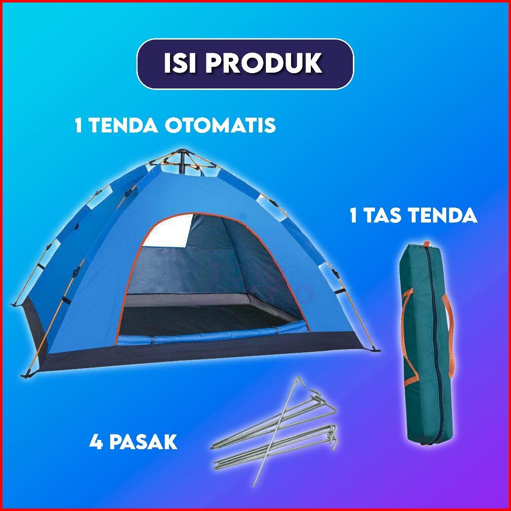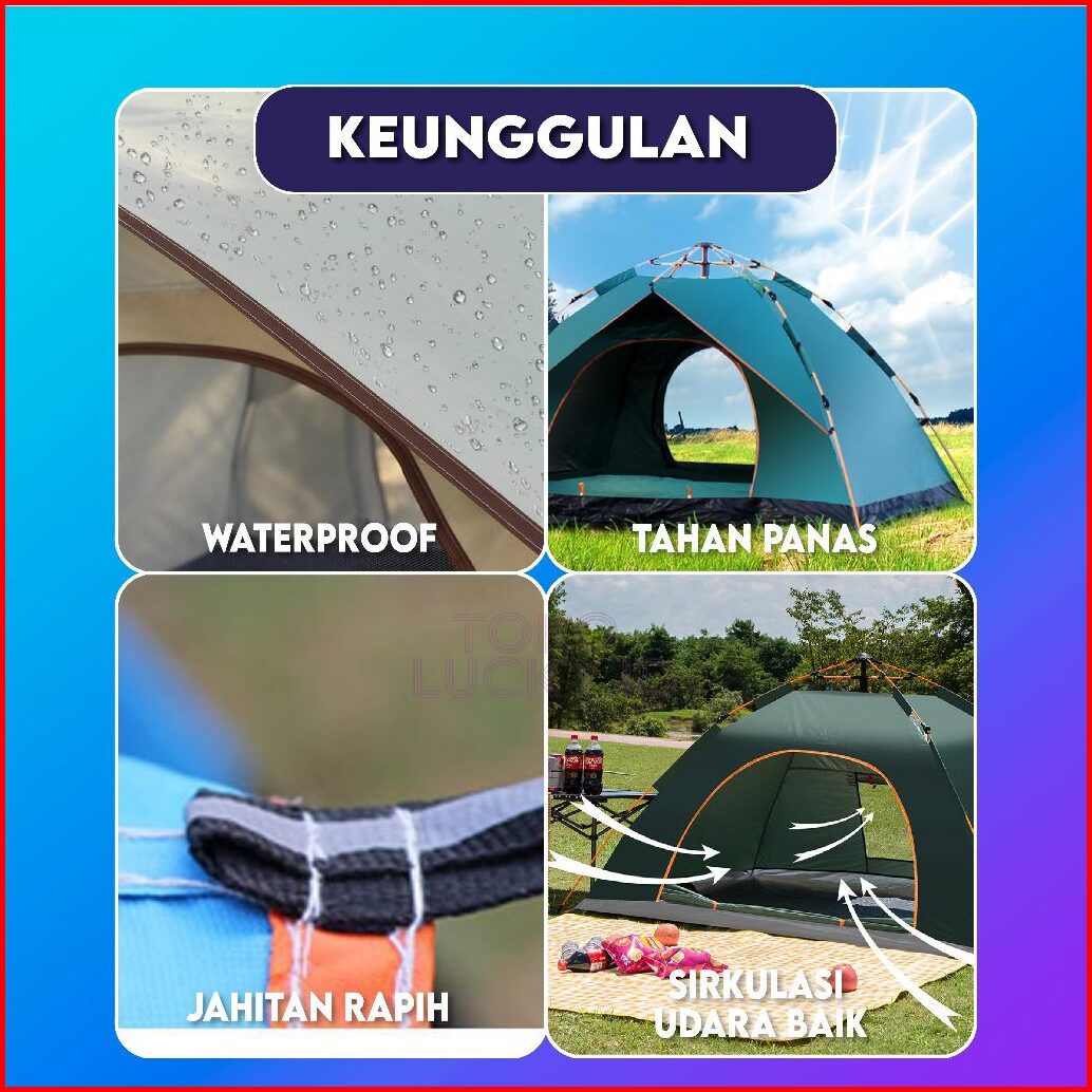 Tenda Otomatis Camping Parasut Kapasitas 3 Orang Alat Outdoor Waterproof