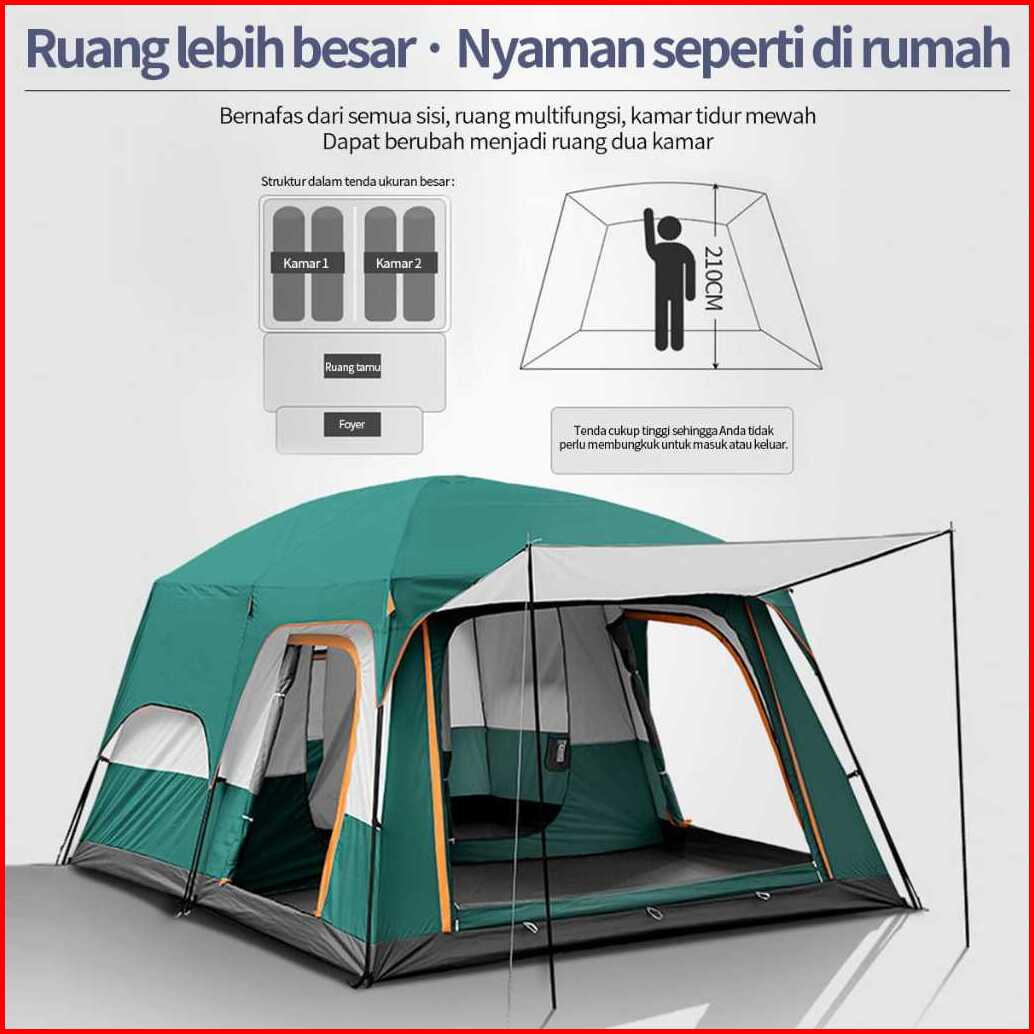 Tenda Camping Kapasitas 8-12 Orang Tenda Lipat Portable Tenda Gunung Waterproof Tenda Otomatis Outdoor