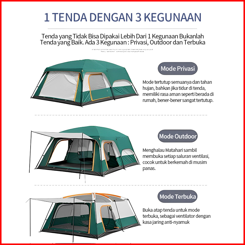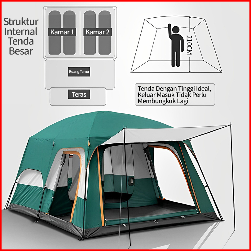 Large Capacity Spacious Field Tent Tenda Camping 5-8 Orang 3.32.12.0m
