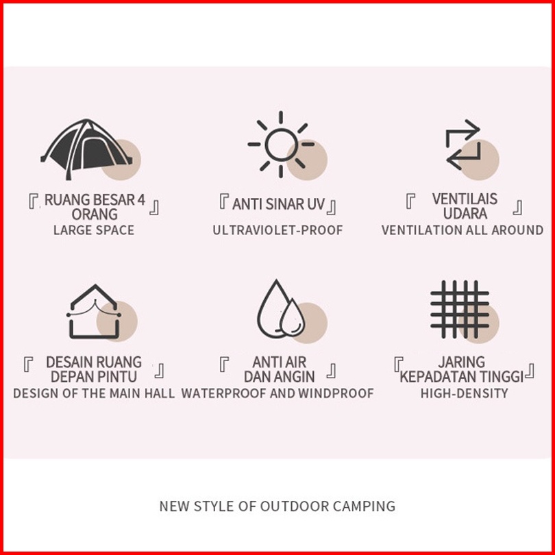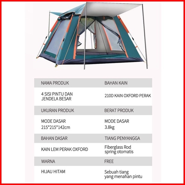Tenda Camping Kemah Otomatis Kapasitas 4-6 Orang Lipat Portable Waterproof Anti Air Outdoor Indoor Tenda
