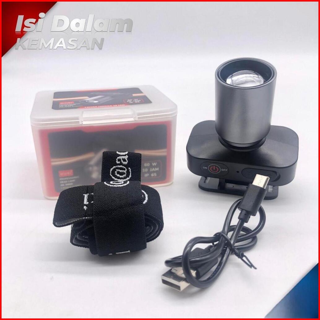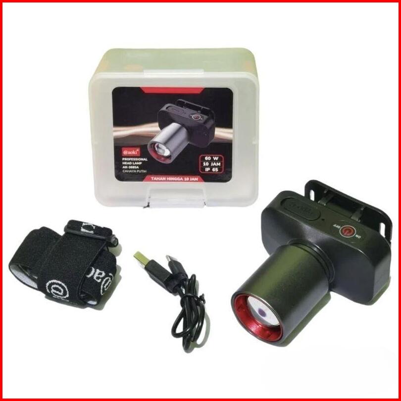 Senter Kepala Zoom Aoki Ak-3685a Super Terang Head Lamp Led 60 Watt Super Terang Senter Kepala Rechargeable Type C