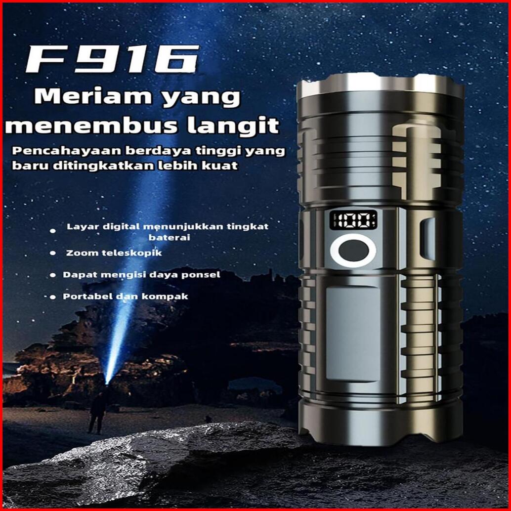 Senter F916 Baru Telah Ditingkatkan Dengan Baterai Lithium Berkapasitas Besar Yang Dapat Bertahan Lebih Dari 8 Jam. Sent
