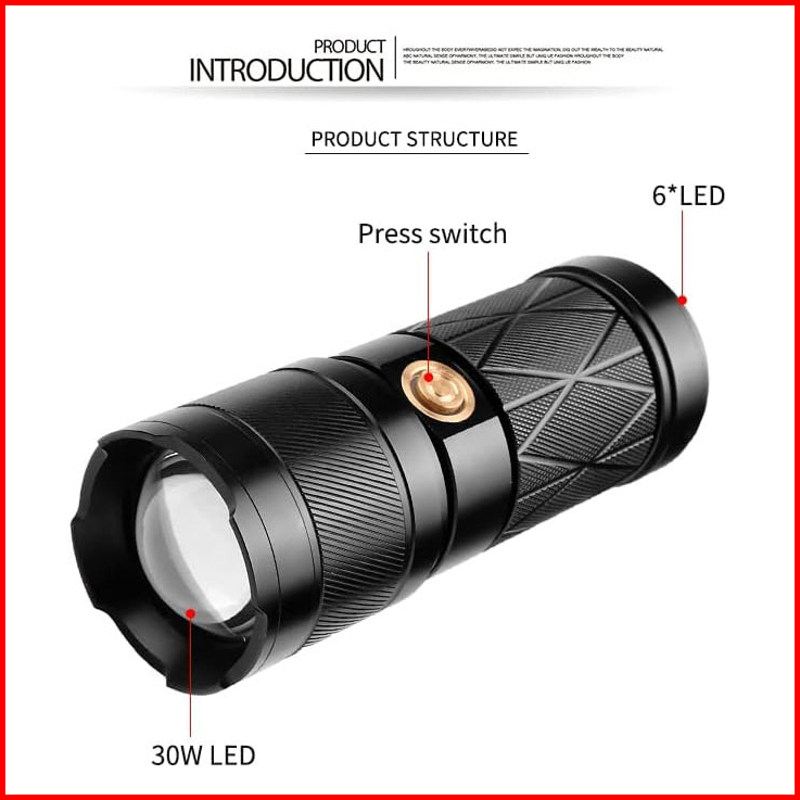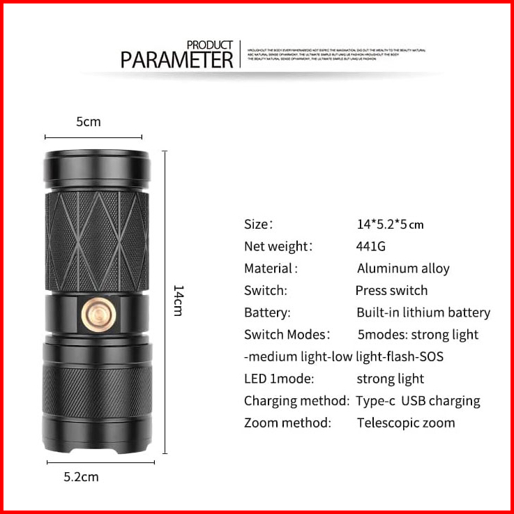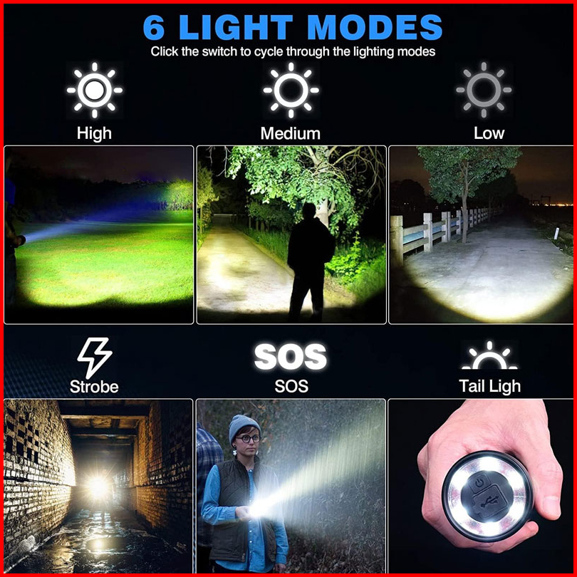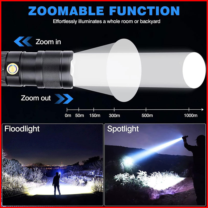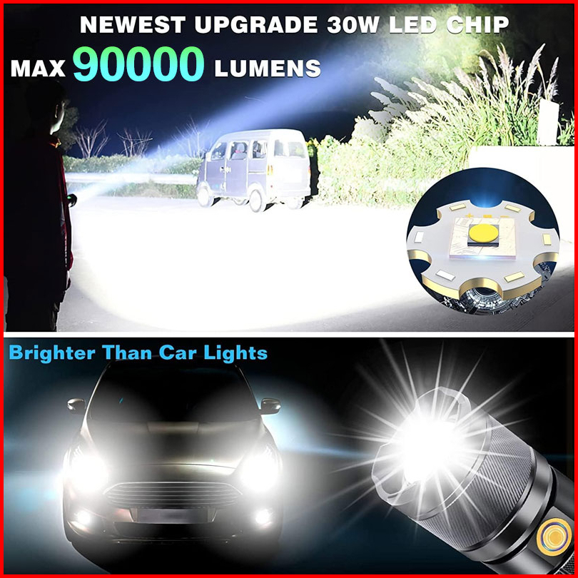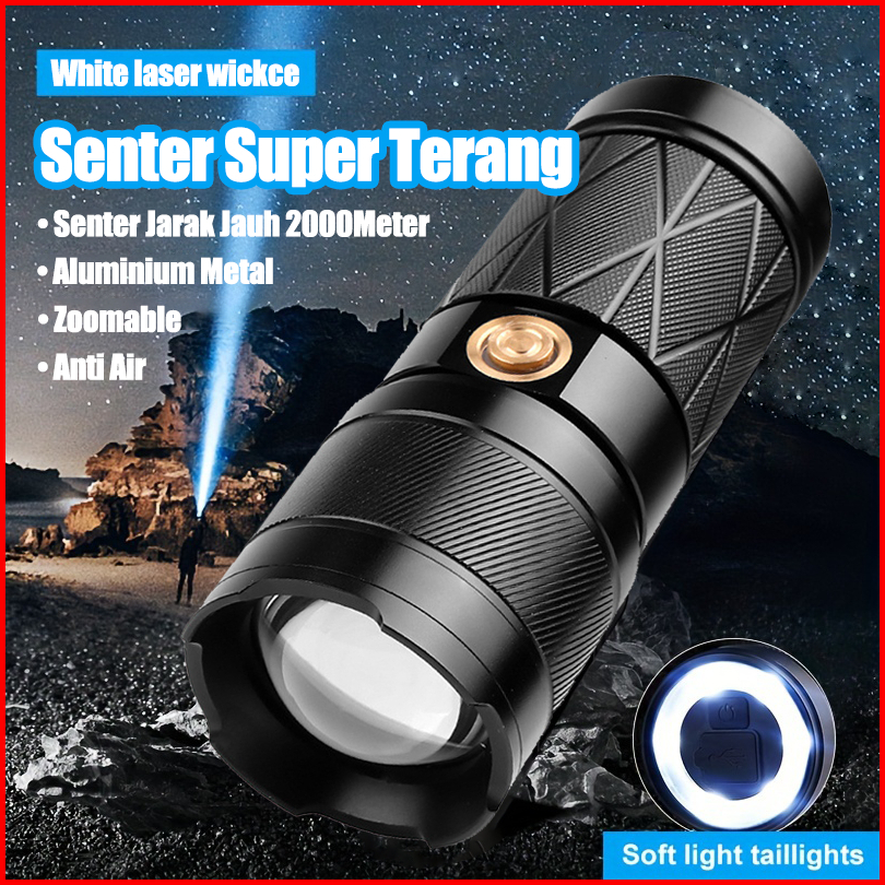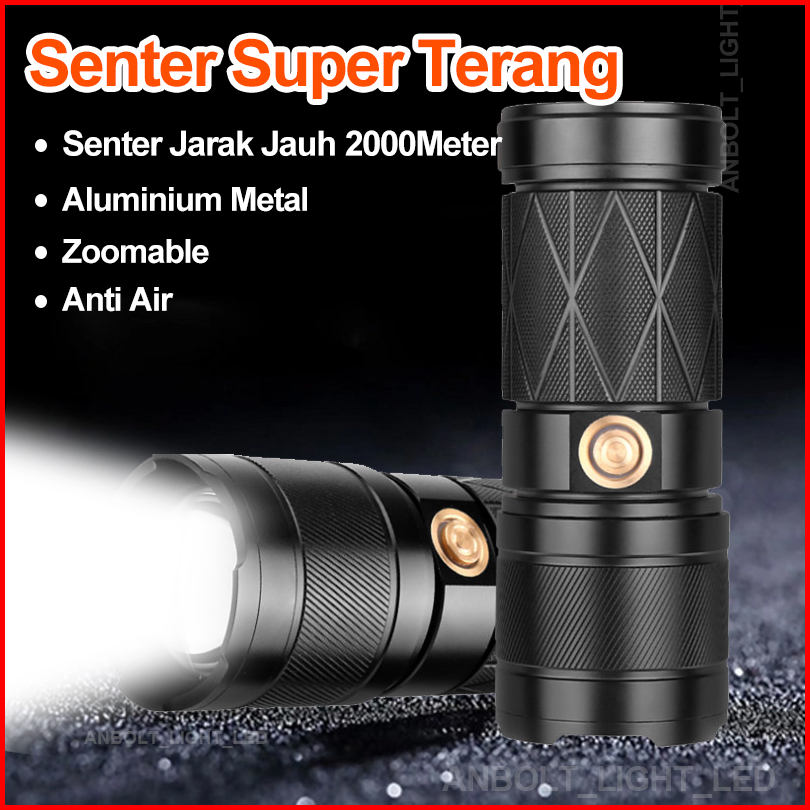 Senter Led Super Terang Jarak Jauh 2000 Meter Zoomable Senter Mini Anti Air Senter Led 90000 Lumens Usb C Rechargeable F