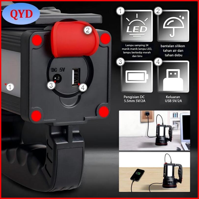 Qyd Senter Super Terang Dengan Holder Dan Lampu Samping Ipx4 Tahan Air 80w Lampu Senter Qt984