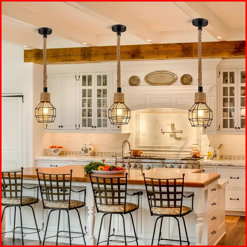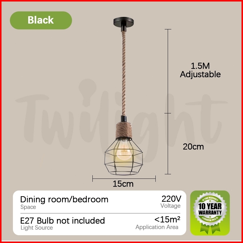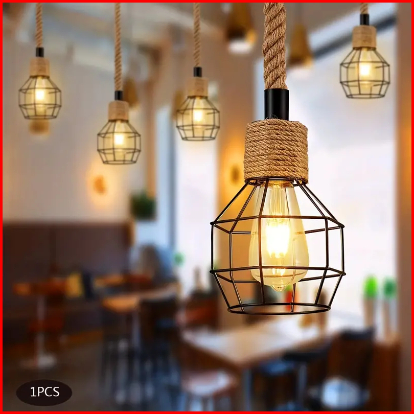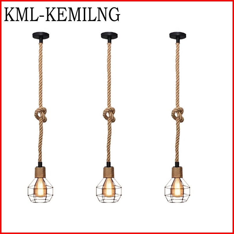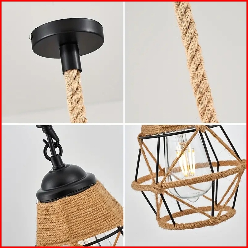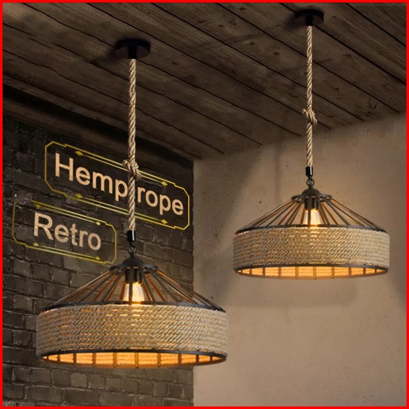 Kml-kemilng Lampu Gantung Tali Rami Antik Industrial Design Interior Pendant Light Dekorasi Restoran Cafe Bar Counter