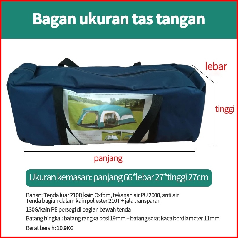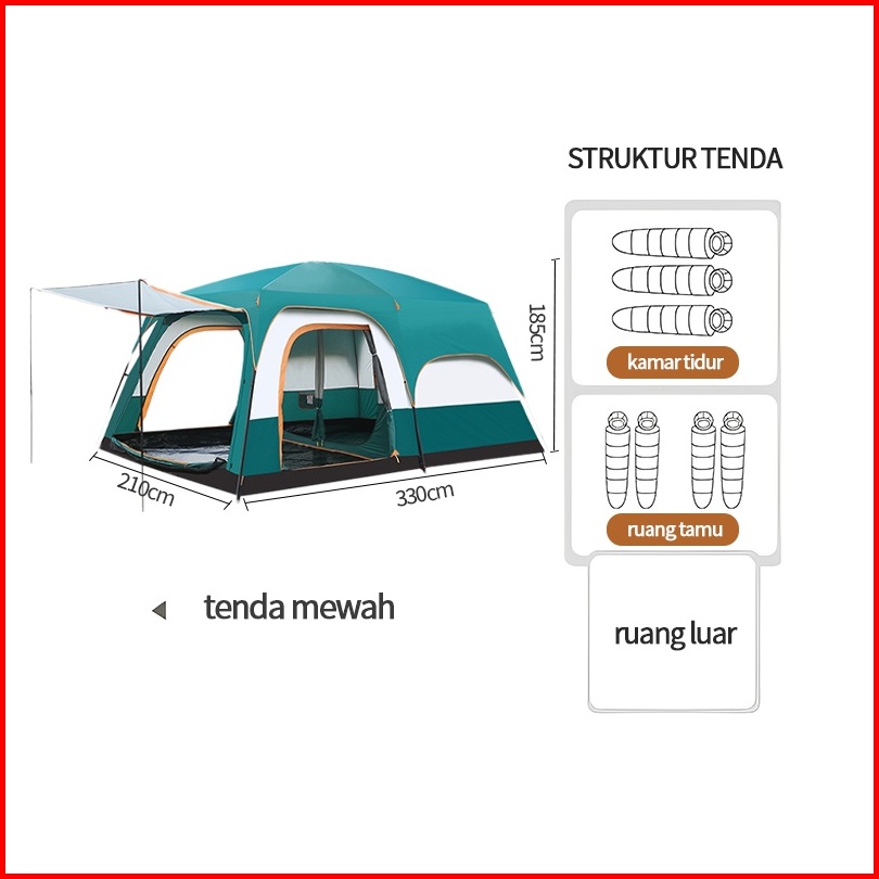 New Tenda Camping Kapasitas Luas 5-8 Orang Lipat Portable Waterproof Anti Air Outdoor Tenda Gunung