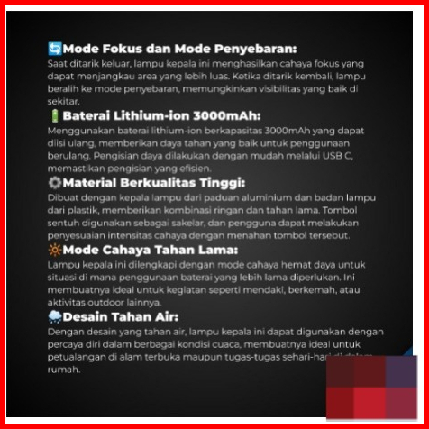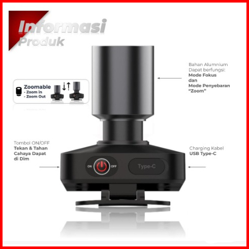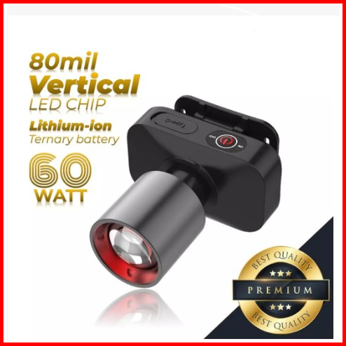 Senter Kepala Aoki Cahaya Maksimal Pro Dengan Usb-c 60w Fokus Penyebaran Zoom