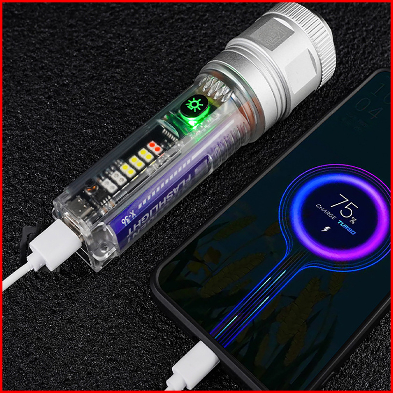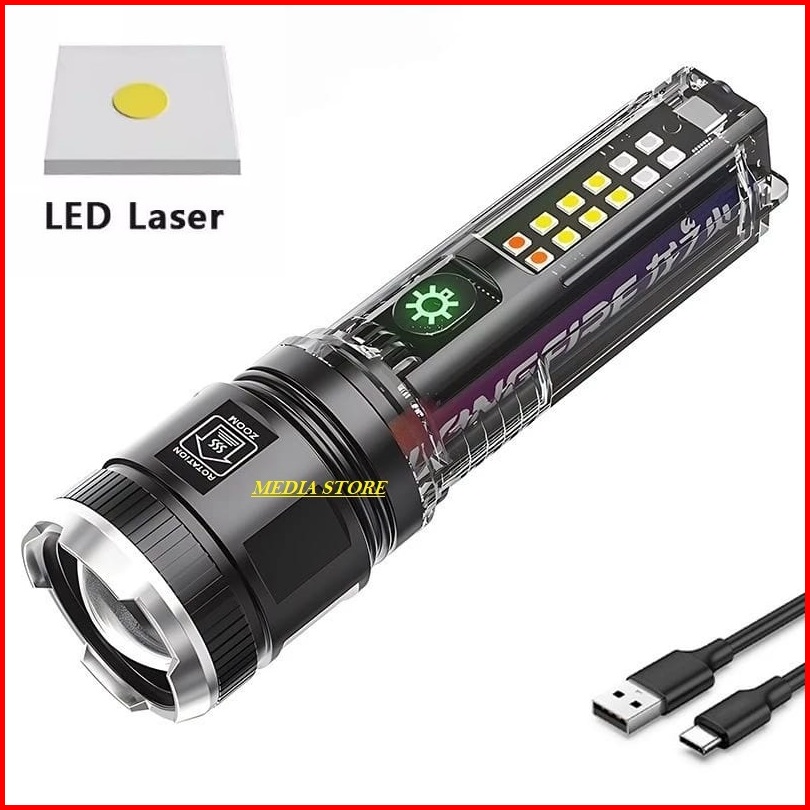 Senter X36 Led Laser Bisa Zoom - Cahaya Terang - Bisa Jadi Powerbank - Tenaga Matahari - 7 Mode