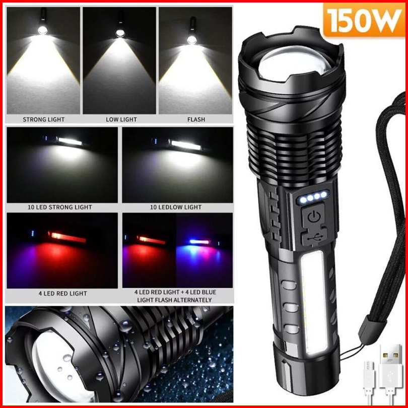 Senter Swat Police Terbaik Zoom 7 Mode Cahaya Senter Senter Led Rechargeable Senter Led A76 Jarak Jauh Senter Cas Usb