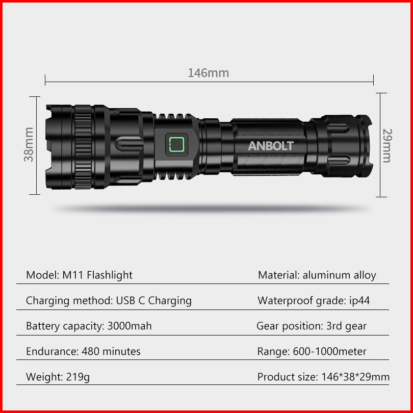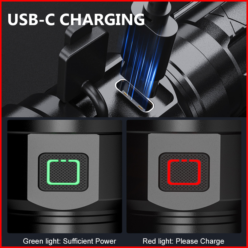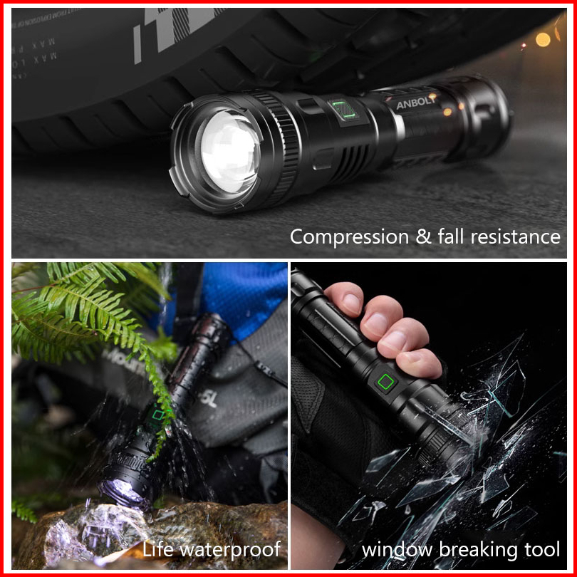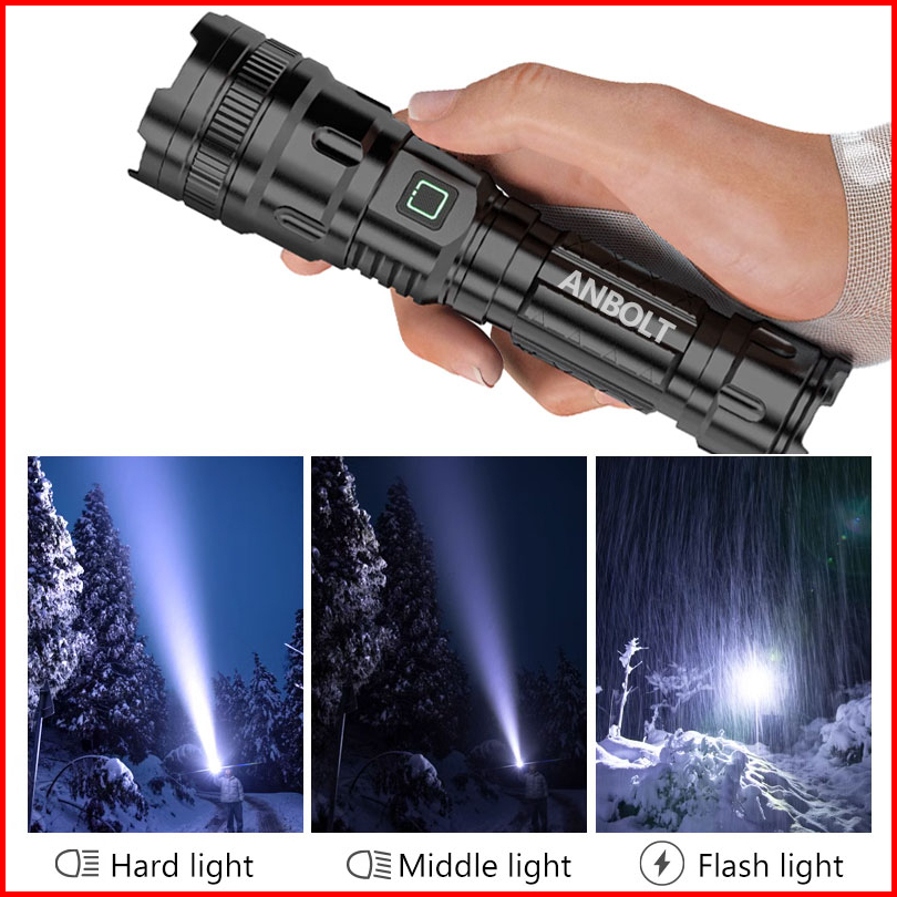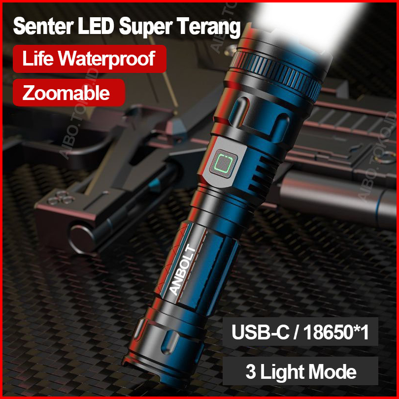 Anbolt Senter Super Terang 90000 Lumens Type C Rechargeable Zoomable Senter Jarak Jauh Mini Anti Air Senter Tahan Lama F