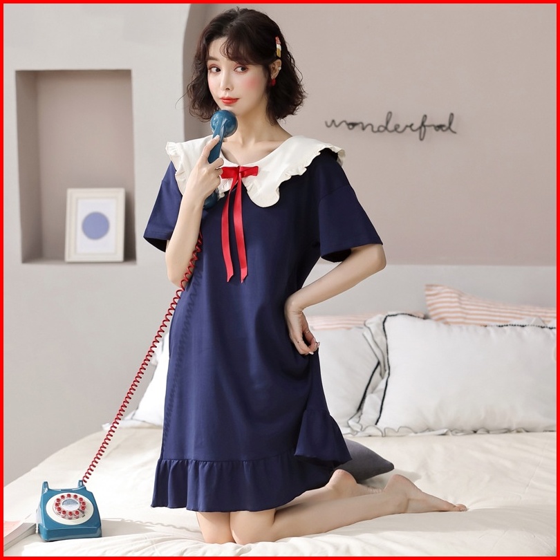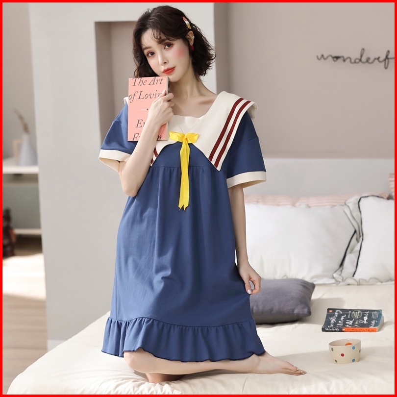 Lovera Baju Tidur Daster Katun Model Sailor Style Jepang Korea High Quality