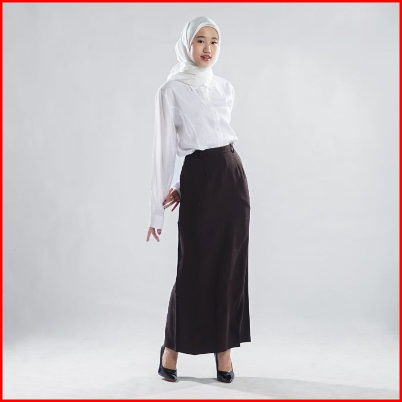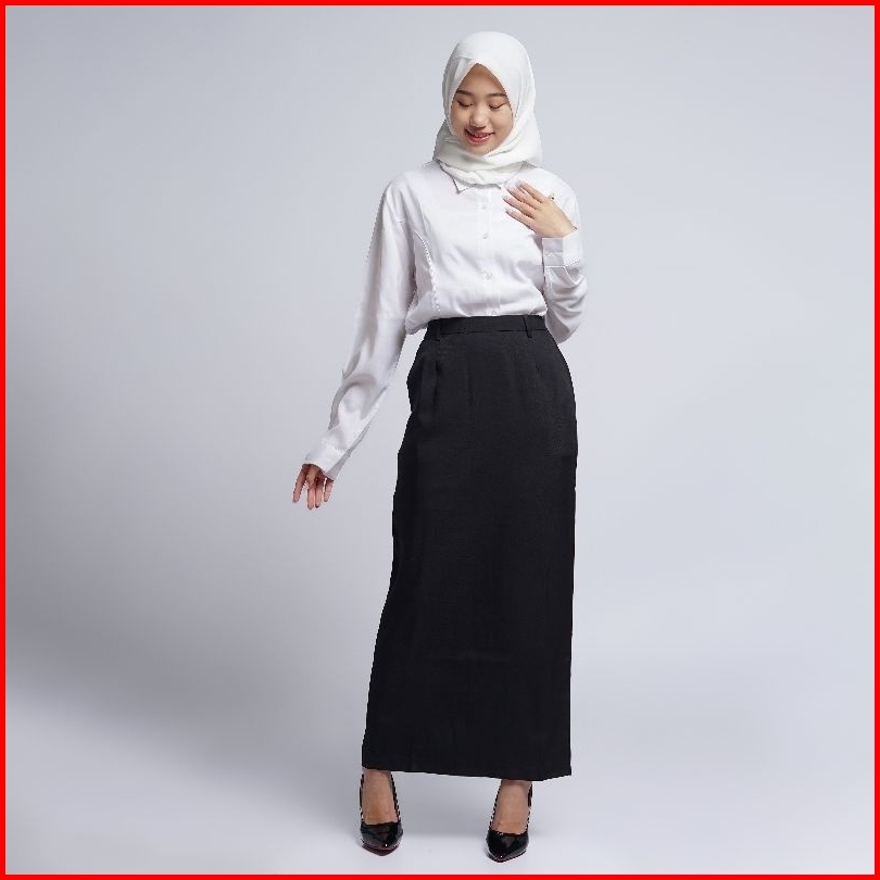 Rok Kerja Wanita Kantor Terbaru Reguler Fit Resleting Polyester Premium Stretch Import Hitam Milo