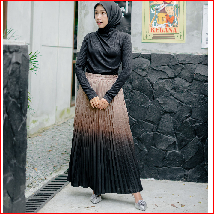 Diora Rok Plisket Gradasi Premium Bawahan Wanita All Size Rok Panjang Elegan Rok Muslimah Kekinian