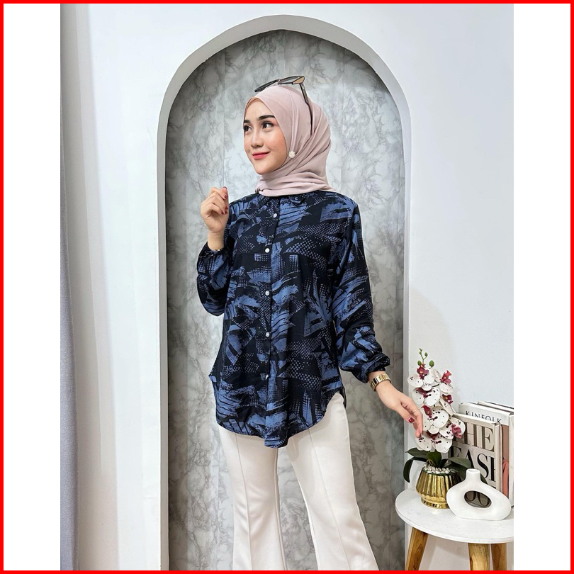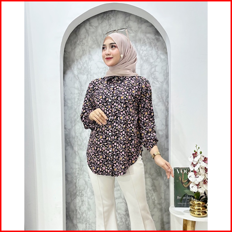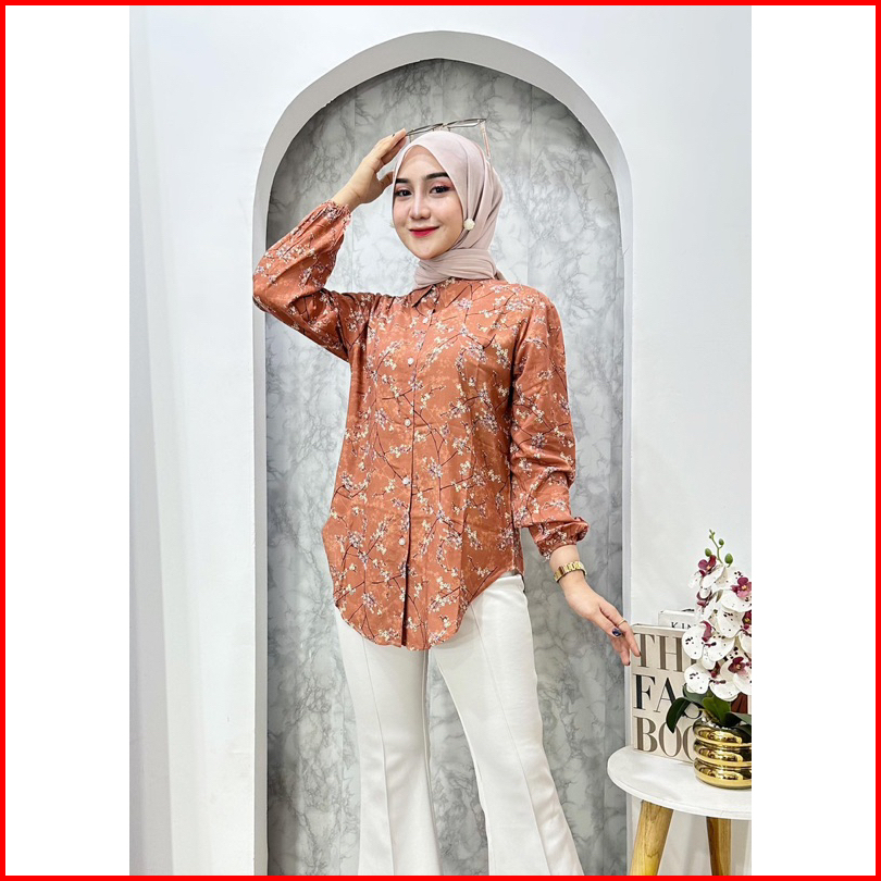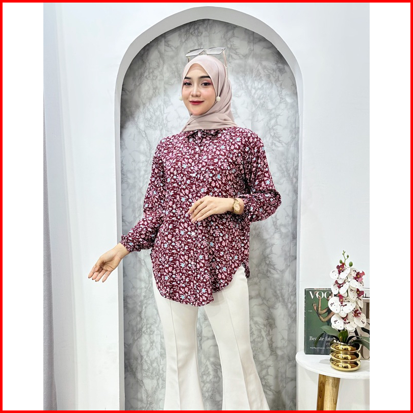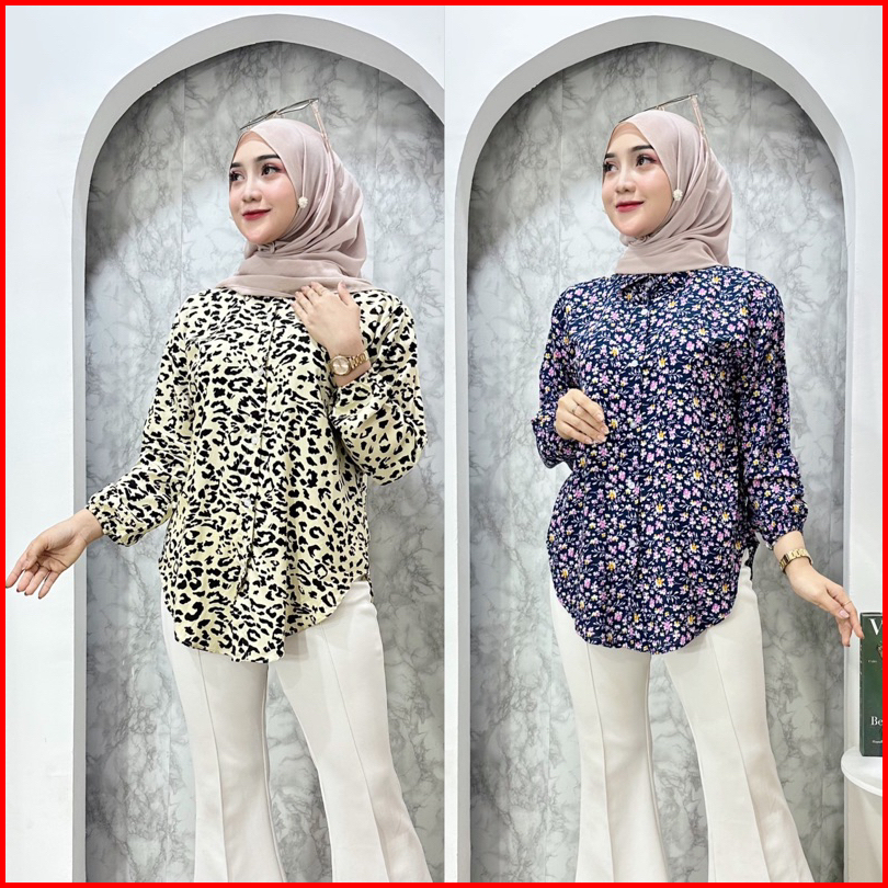 Premium Kemeja Wanita Oversize - Basic Shirt Kemeja Shirt Blouse Kemeja Wanita Rayon Motif