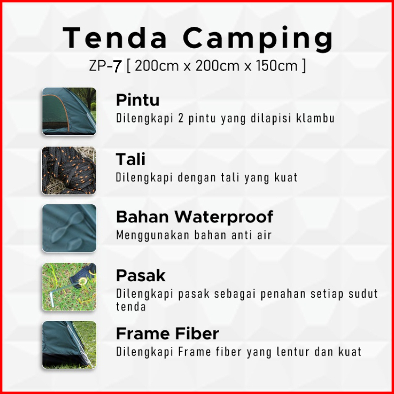Tenda Camping 3-5 Orang 200 Cm X 200cm X 135cm Tenda Lipat Portable Tenda Gunung Waterproof