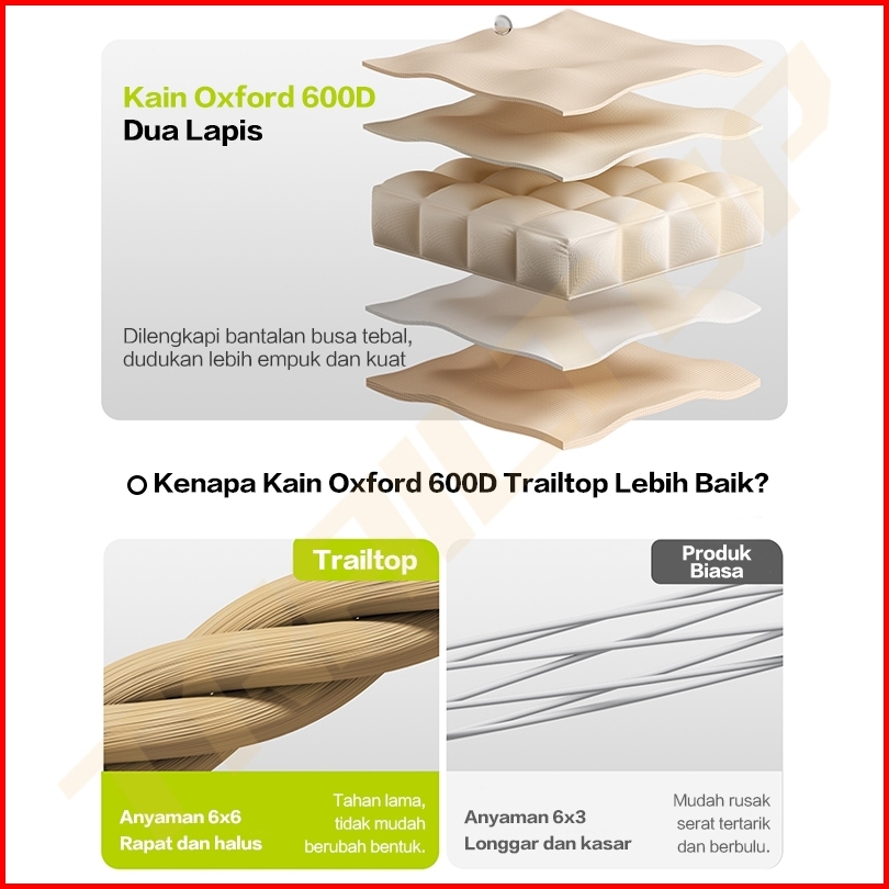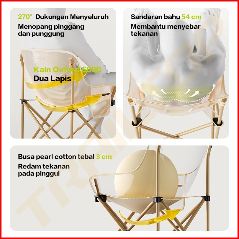 Trailtop Kursi Lipat Outdoor Kain Oxford 600d Lebar Tahan Aus Kursi Lipat Camping Beban 150kg