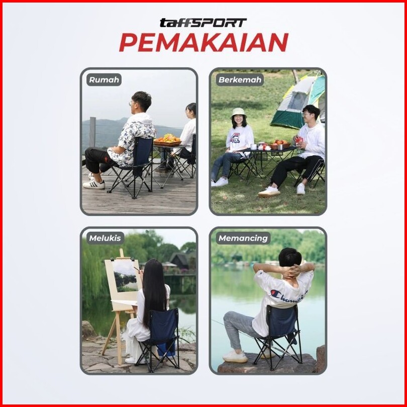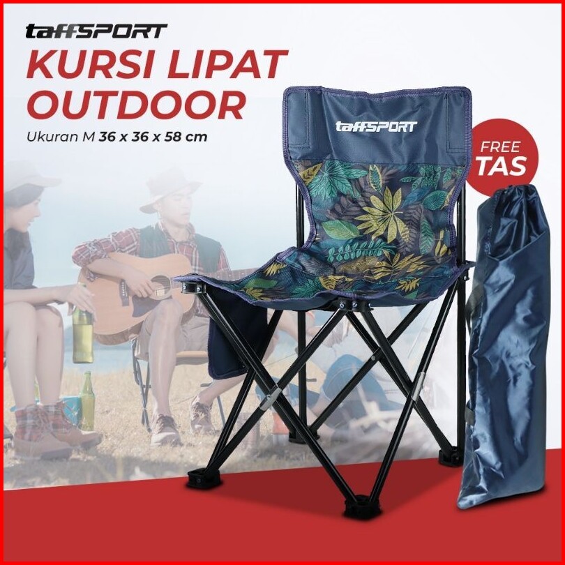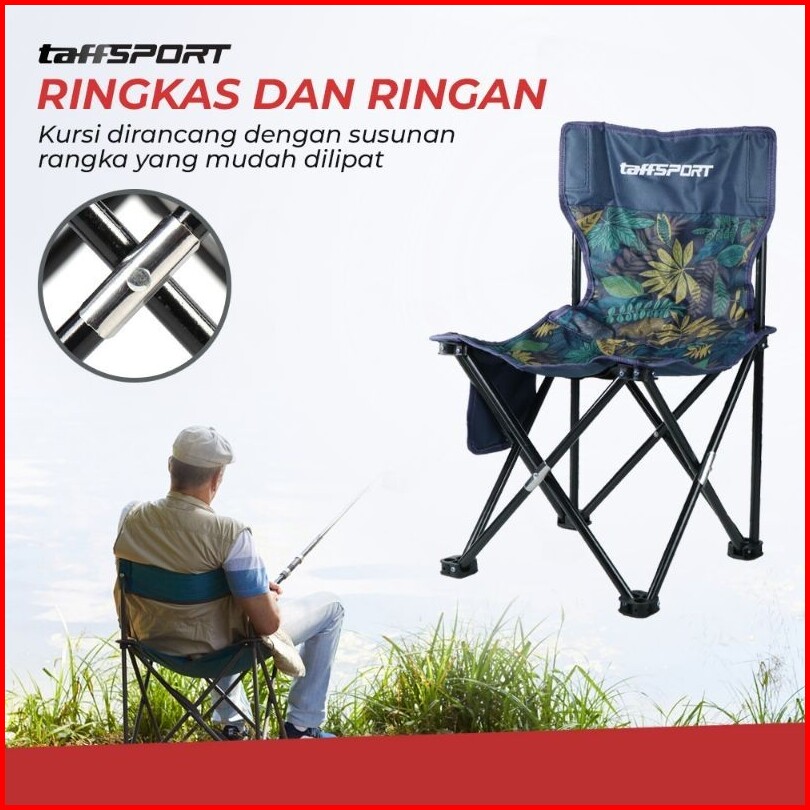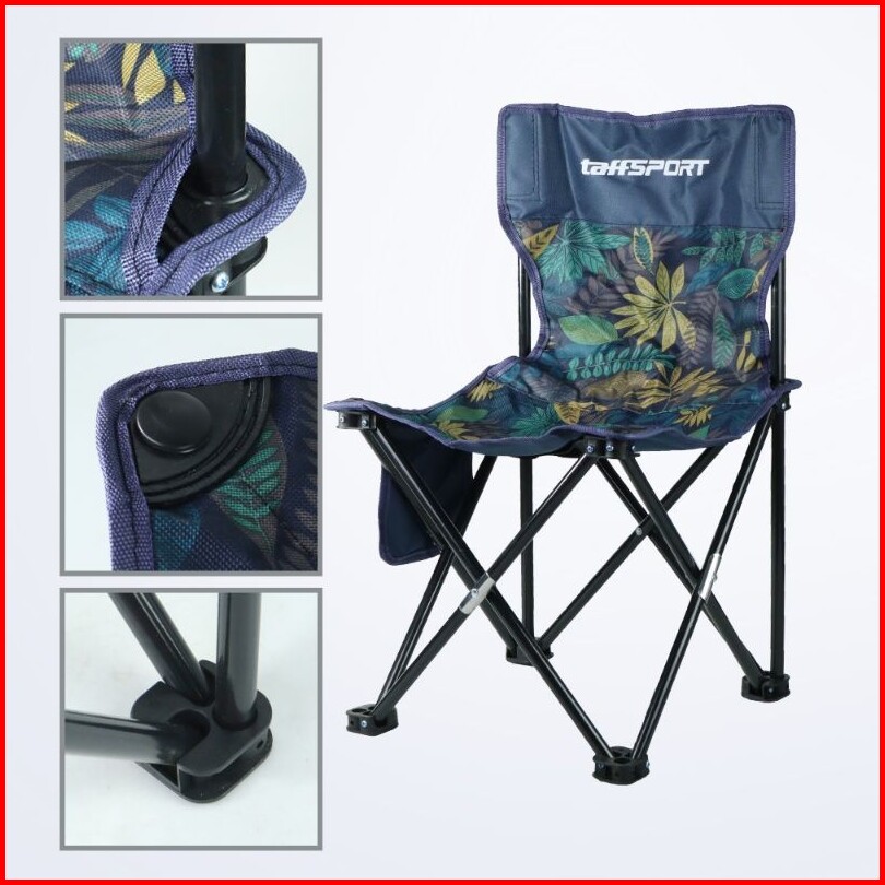 Kursi Lipat Outdoor Kursi Lipat Mancing Camping Foldable Chair With Pocket Biru Motif