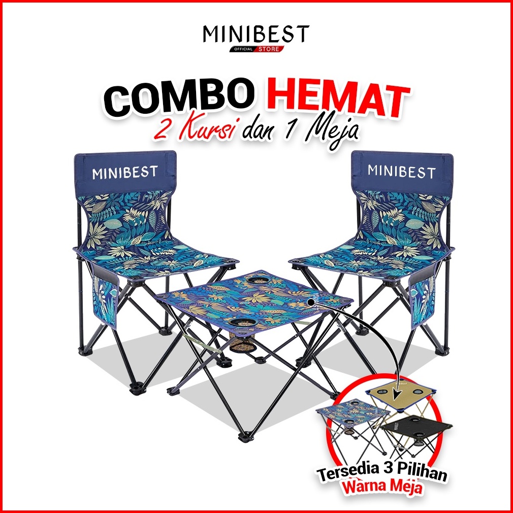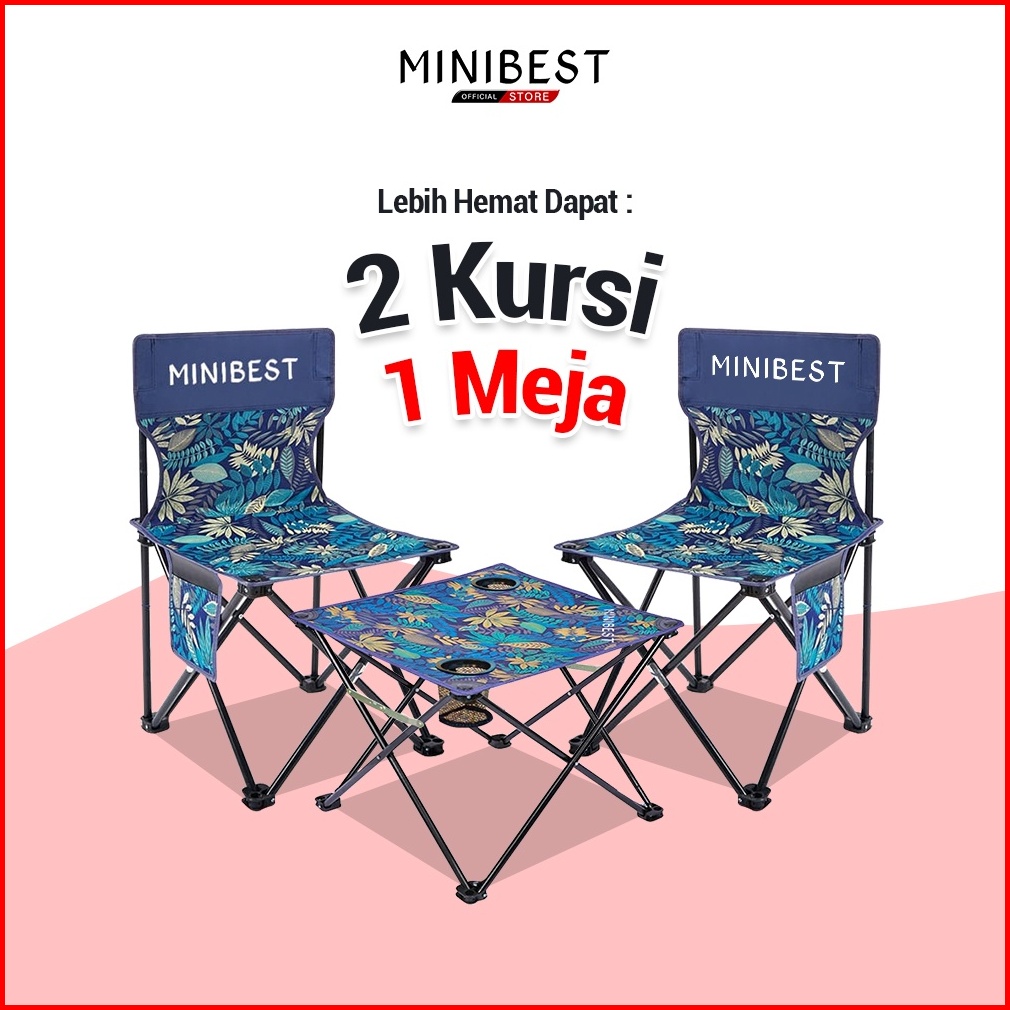 Minibest Combo Hemat 2 Kursi Lipat Kl02 Portable Dan 1 Meja Lipat Camping Portable Bz02