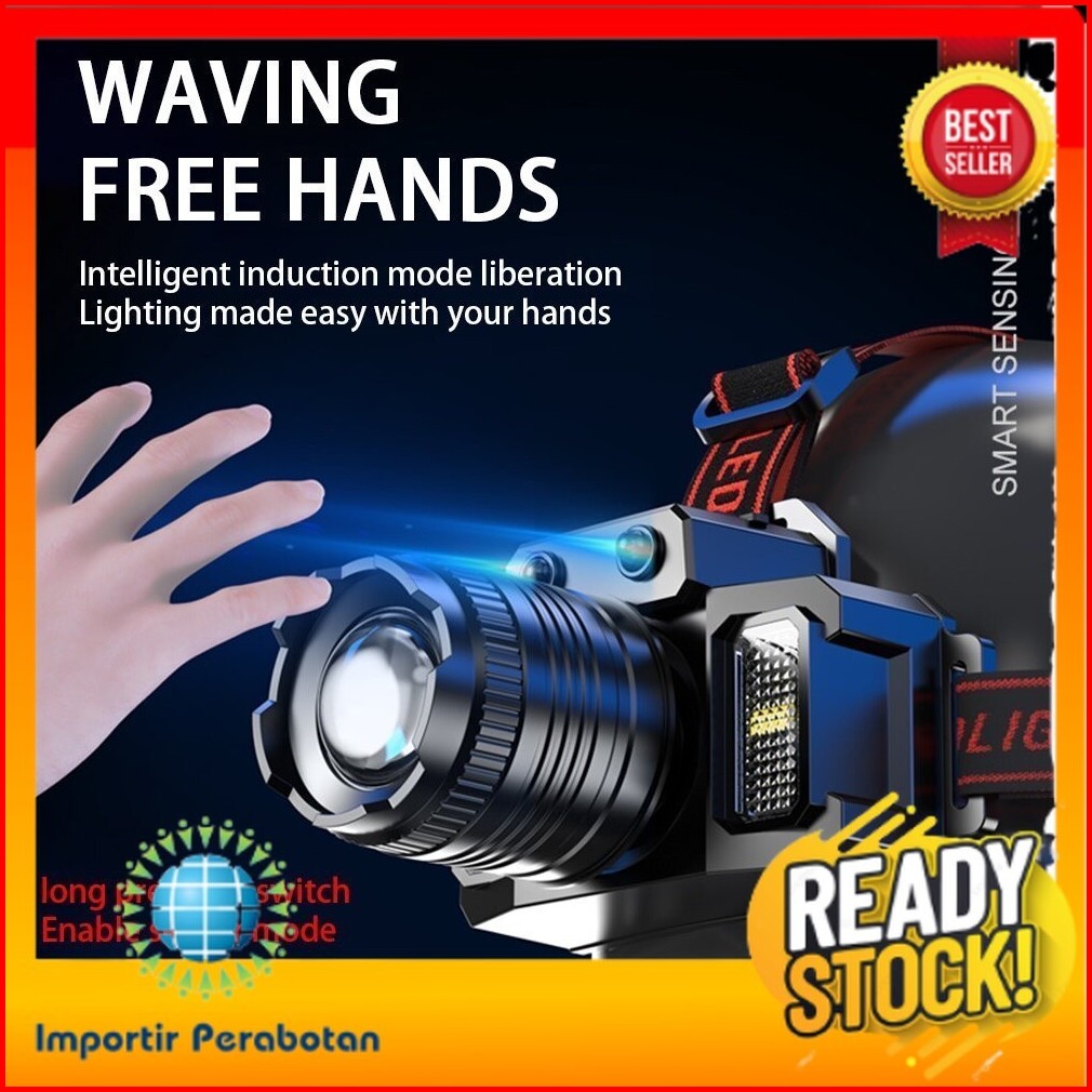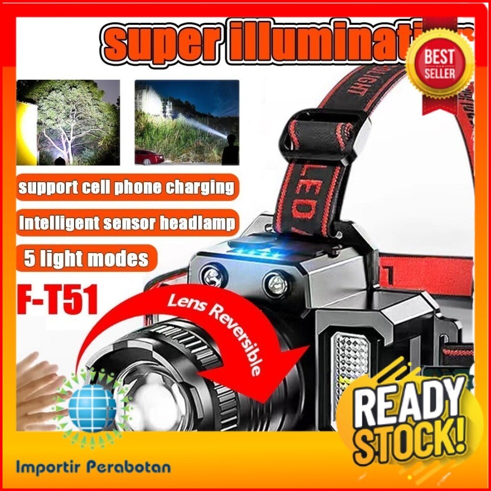 Imp-a402-f-t51 Lampu Kepala Led Headlamp F-t51 Super Terang 5000 Lumen Usb Charging Senter Dengan Sensor Tangan Sorot De