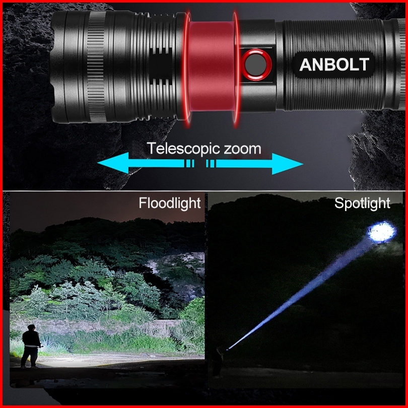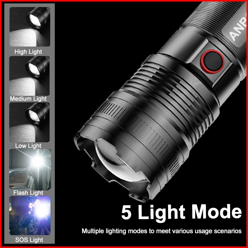 Anbolt G35 Senter Led Super Terang Tahan Lama 100000 Lumens Senter Tahan Air 5 Light Mode Senter Zoom Type C Rechargeabl
