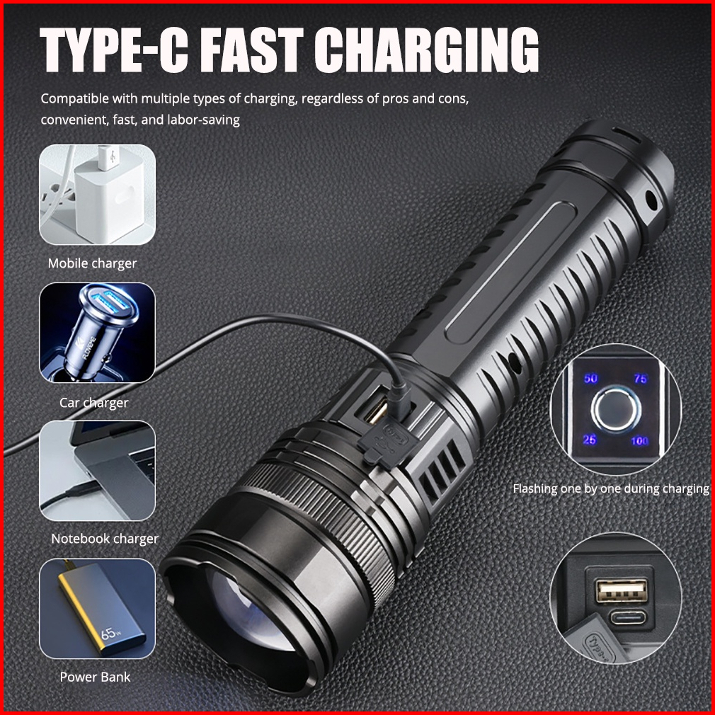 Anbolt-toko Bendera Senter Super Terang Jarak Jauh 150000 Lumens Ori Usb C Rechargeable Zoomable Senter Laser Putih Led