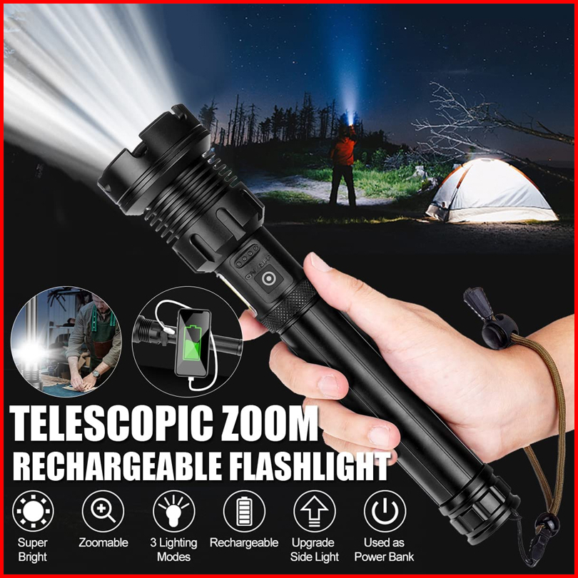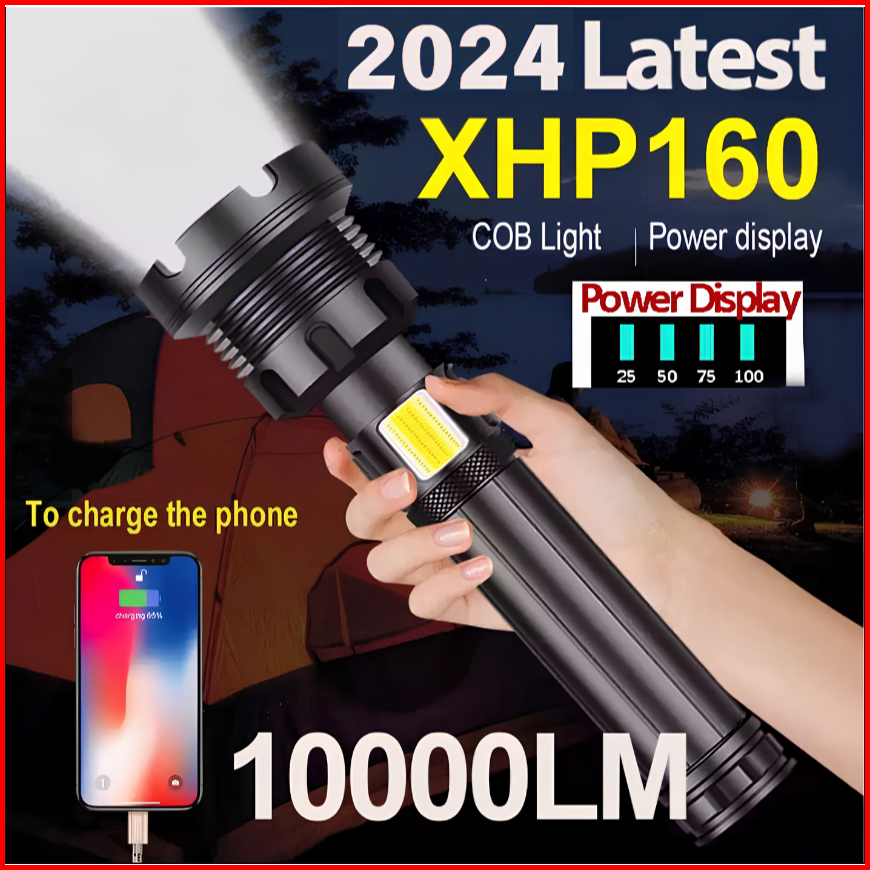 Senter Swat Xhp-160 Led Sorot Super Terang Senter Jumbo P160 Cas Usb Rechargeable 7 Mode