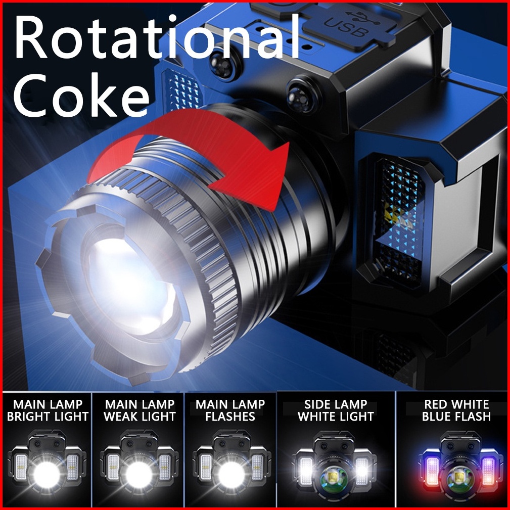 Lampu Kepala Led Headlamp F-t51 Super Terang 5000 Lumen Usb Charging Senter Dengan Sensor Tangan Sorot Dengan 6 Mode Cah