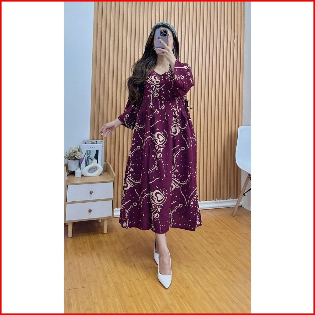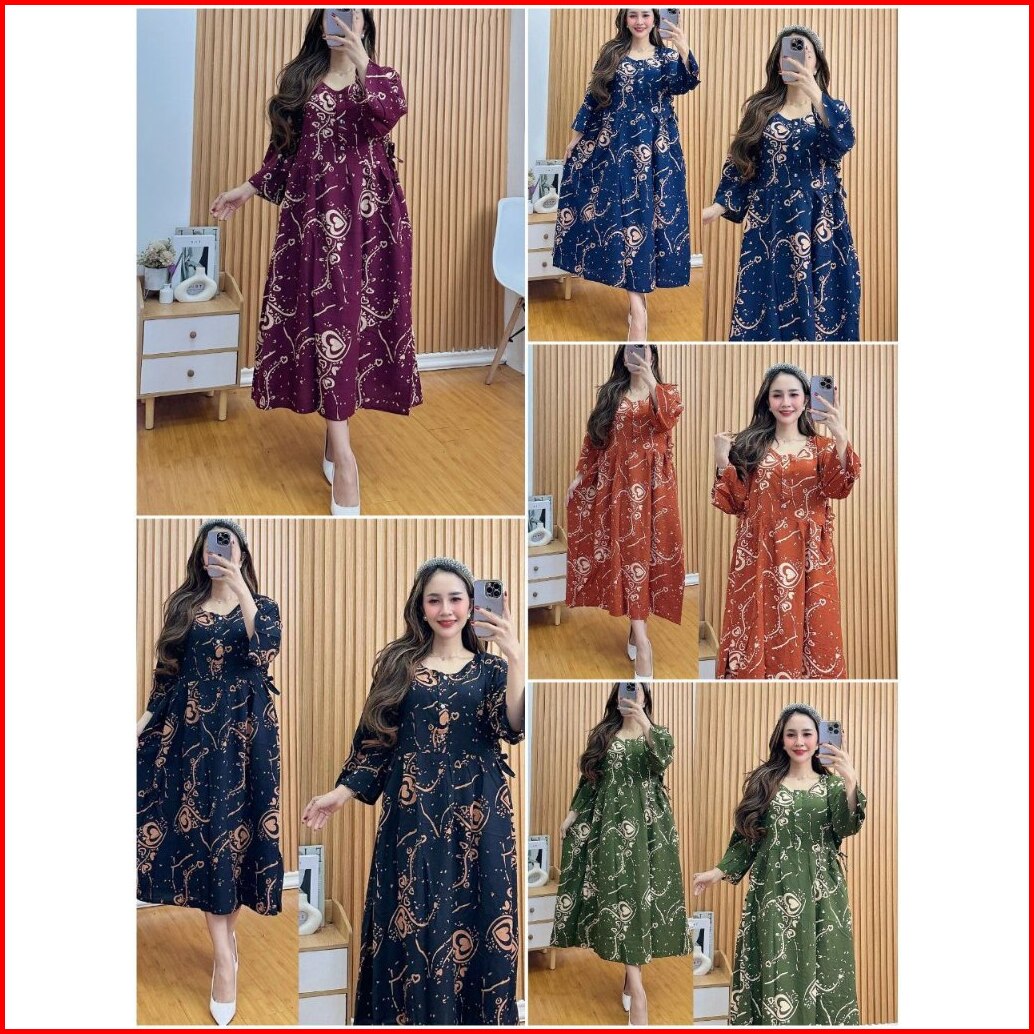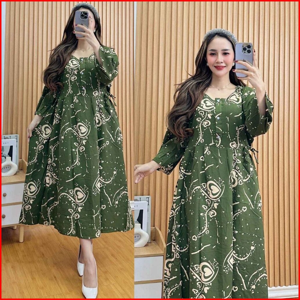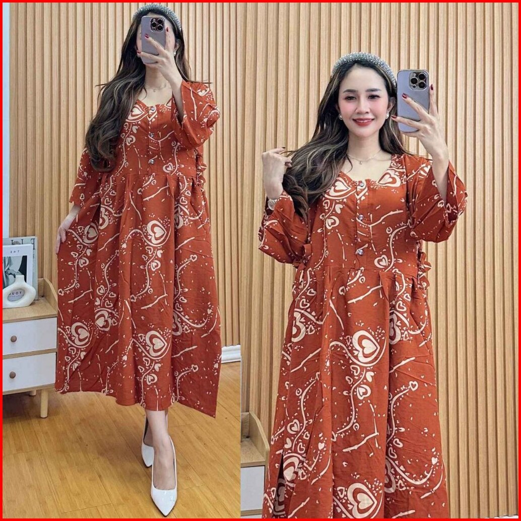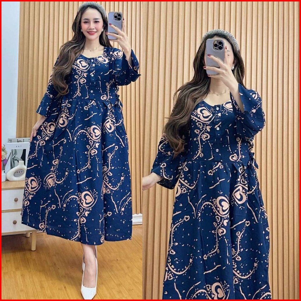 Daster Jumbo Wanita Ld 120 Lengen 3 4 Terbaru 2024 Dress Bahan Rayon Super Tebel Busui Kancing Aktif