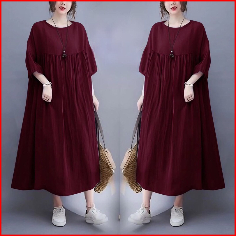 Nabilaa Dress Midi Dress Wanita Dress Kekinian Dress Korean Style Daster Kekinian Daster Jumbo Daster Rayon Polos