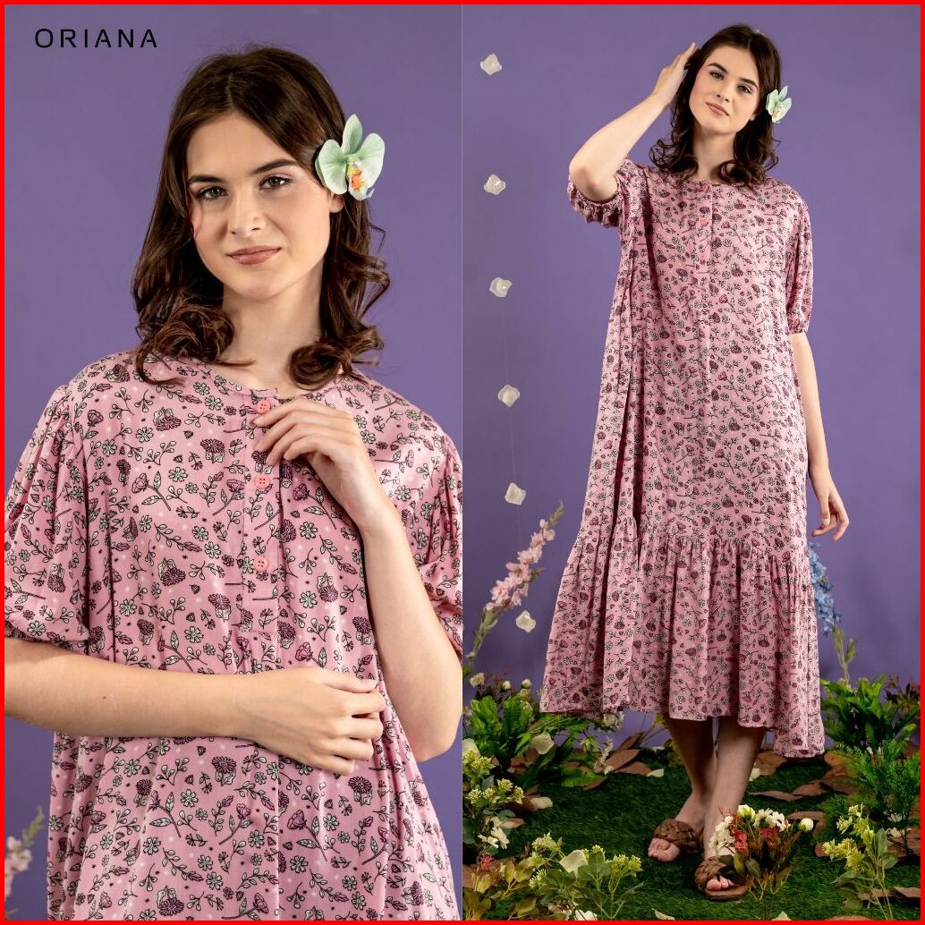 Oriana Homewear Maxi Dress Avanthi Evalia Series Daster Ruffle Kekinian Daster Busui Tangan Pendek