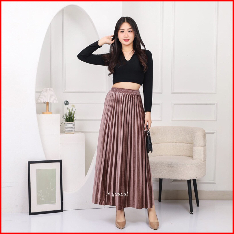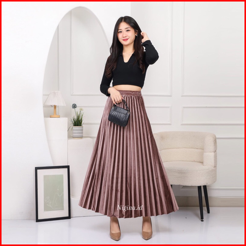 Nigina - Rok Plisket Bludru Velvet Wanita Premium