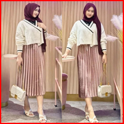Rok Plisket Bludru Pendek 7 8 Premium Beludru Velvet Premium