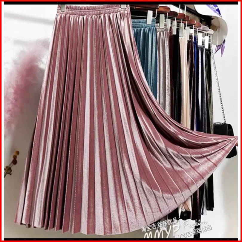Rok Plisket Bludru Velvet Bulu Panjang Plisket Bahan Impor Premium Terbaru 2024