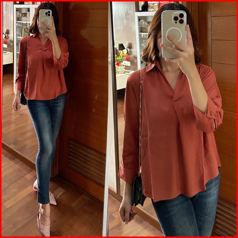 Aluna Basic Blouse Kemeja Rayon Wanita Blouse Polos Bahan Rayon Twill