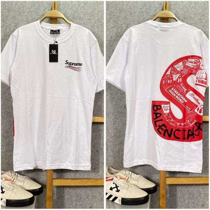 Kaos SUPREME X BALENCIAGA PUTIH T-shirt Oversize pria/wanita