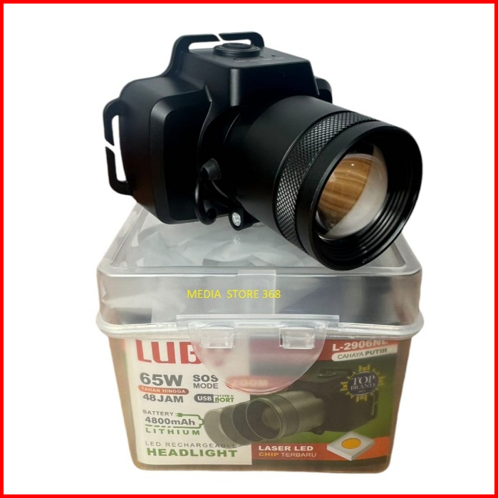 Senter Kepala Zoom Laser Led 65w Luby L-2906nl - Super Terang - Jarak Jauh - Tahan Lama - Type-c