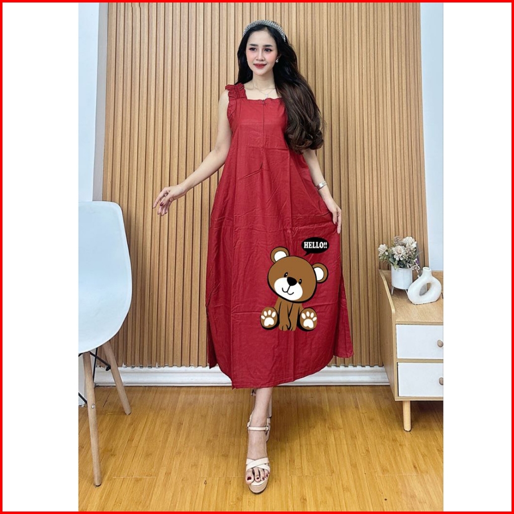 Daster Wanita Kekinian Terbaru Busui Motif Bear Bahan Adem Rayon Grade A