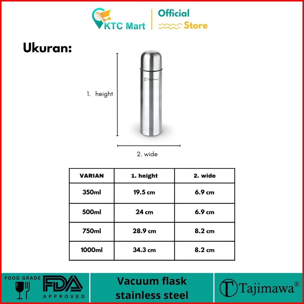 Ktcmart - Tajimawa Termos Air Panas Sus 304 Termos Vacum Termos Air Panas Tumbler Portable Travel