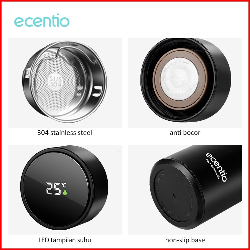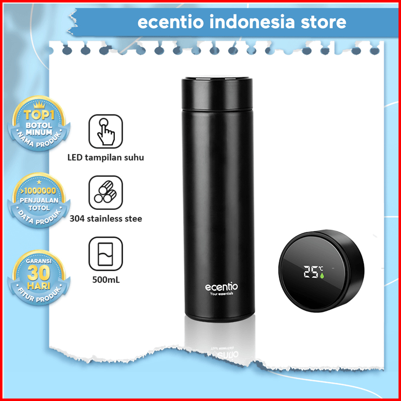 Ecentio Termos Air Panas Mini Led Digital Anti Tumpah Tumbler 304 Stainless Botol Minum Botol Air Panas Dan Dingin 500ml
